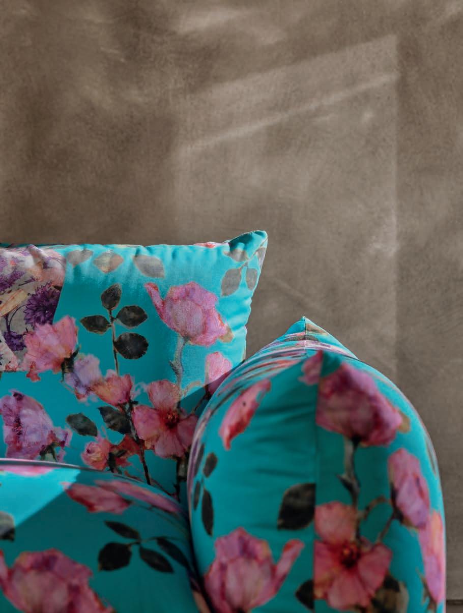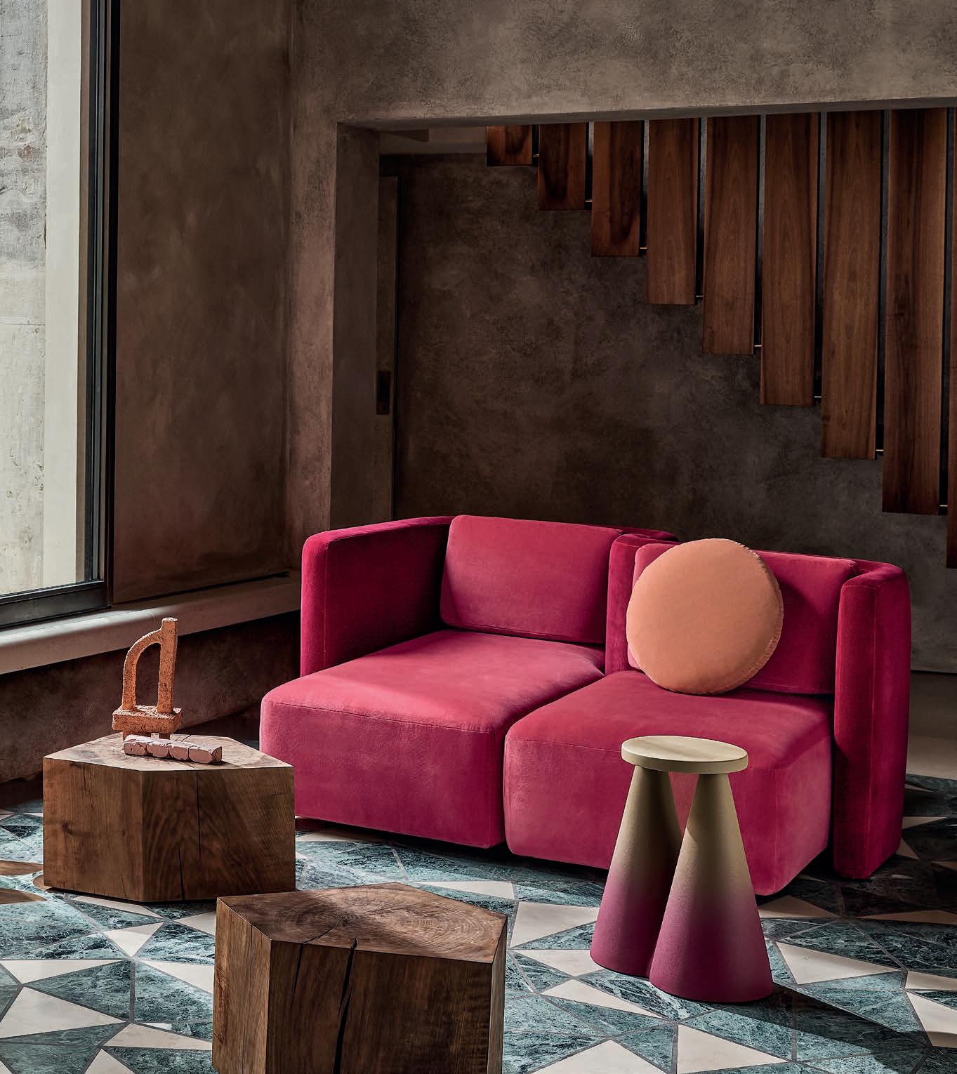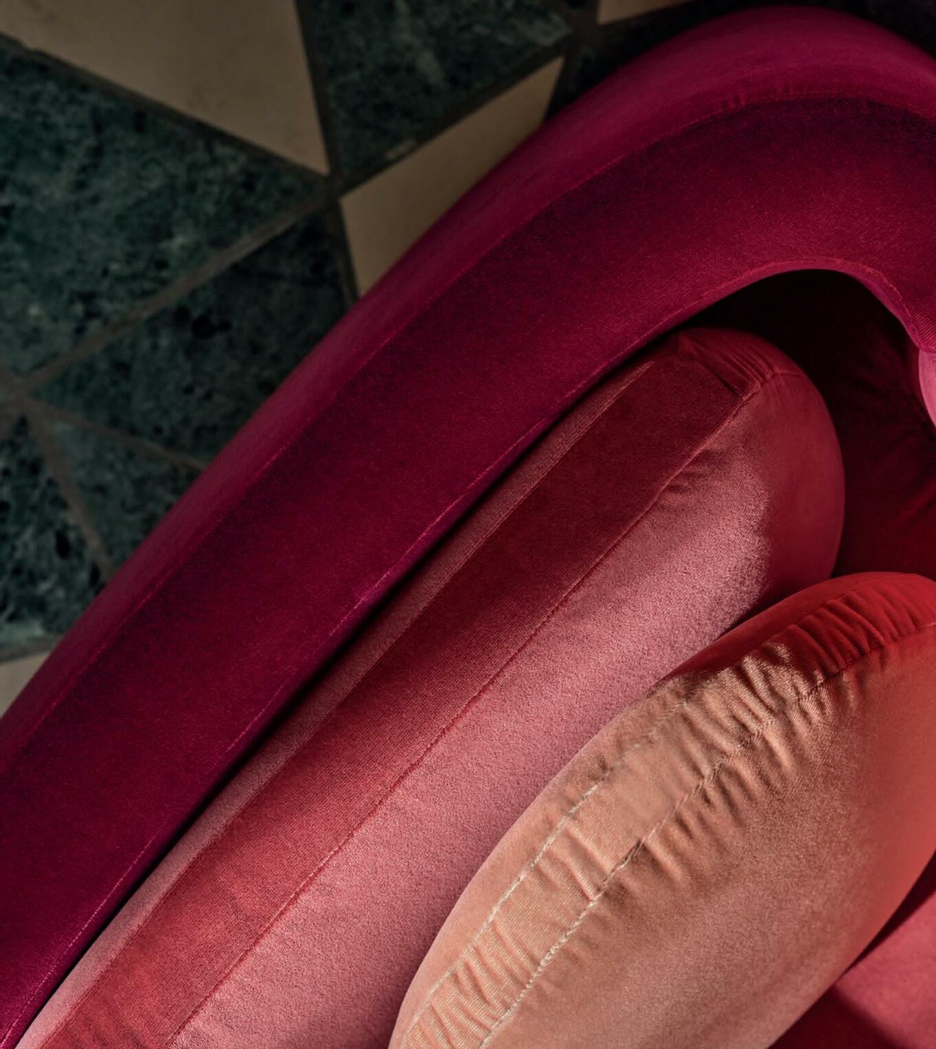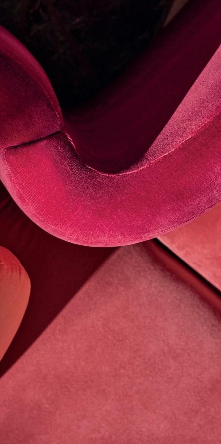 Plain velvet made of mercerised cotton that gives it shine and elegance. The way it catches the light is unique. Shadow has streaks on the ground that give it a lived-in appearance. It is stain- and crash resistant and is available in a very wide palette that matches all the colours in the collection.