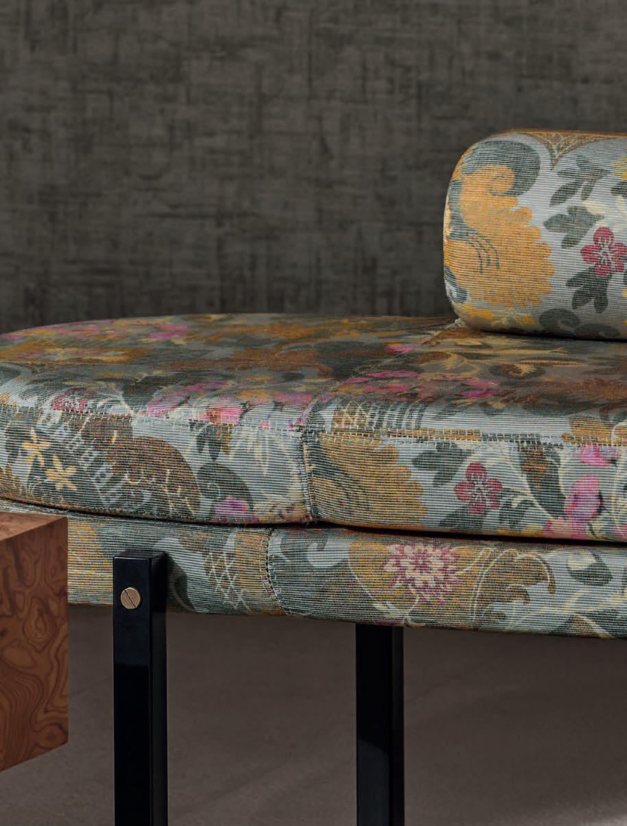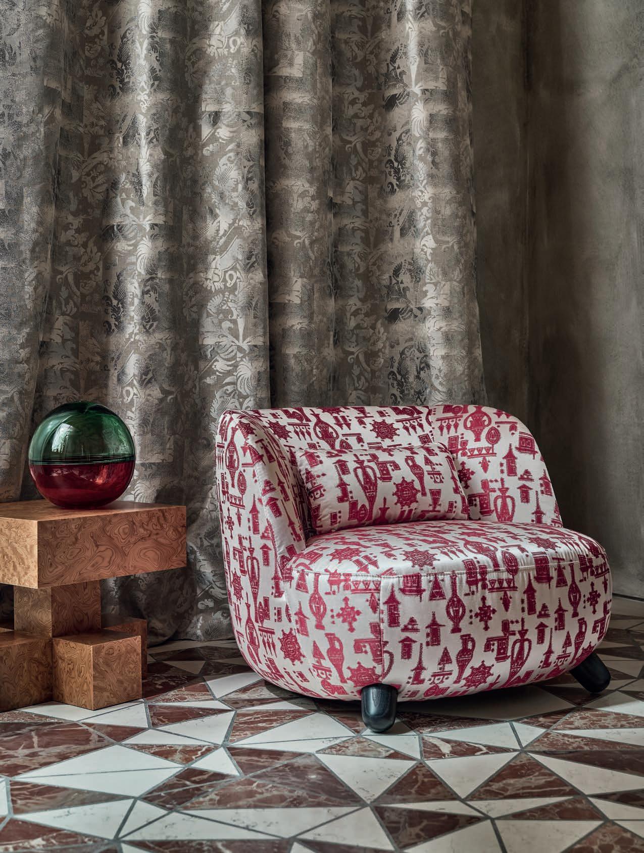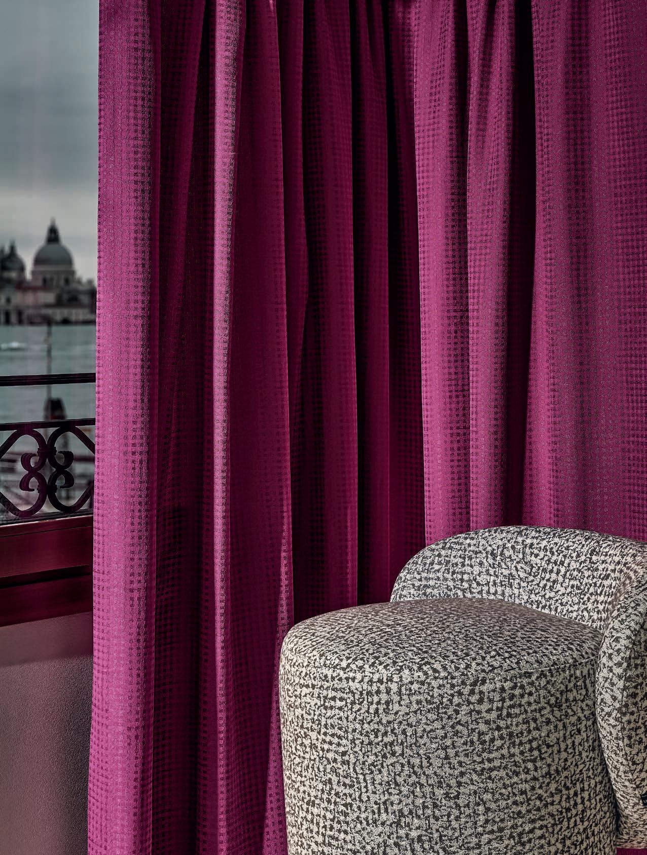 The 2023 Rubelli collection proposes a Venetian journey. A journey made up of various stages and encounters with different materials that are Venice’s hallmark. Often only fragments, precious and meaningful.