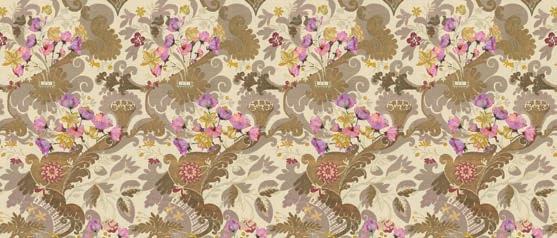 Un lampasso di seta dal disegno aggraziato. Del documento originale, di origine veneziana, custodito nell’archivio storico, l’ufficio stile ha ridotto la scala e ha ricreato – come in un’opera di restauro - parte del documento andato perduto.