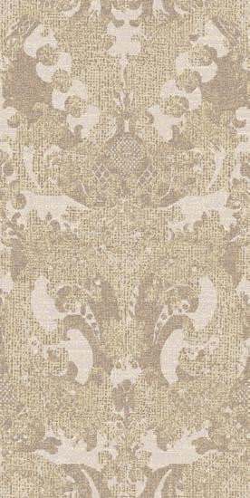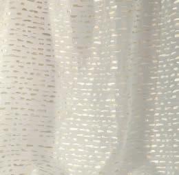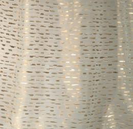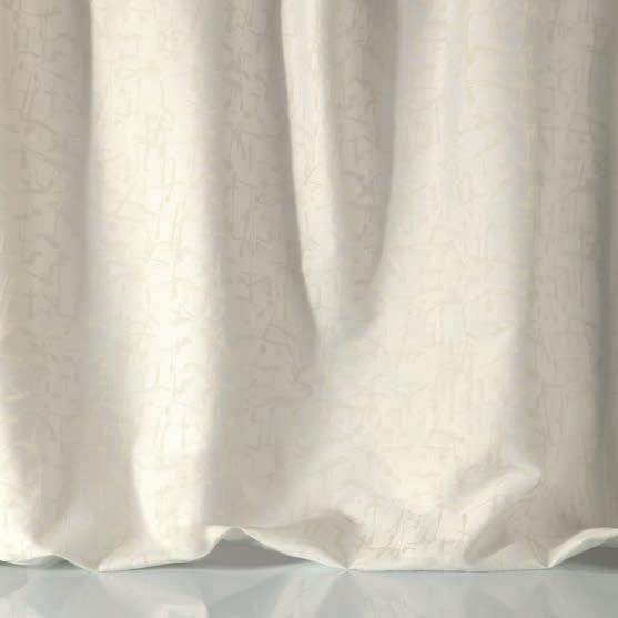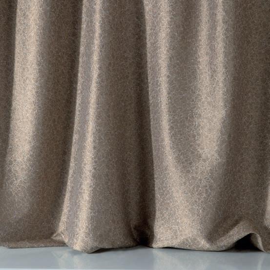 Textured curtain, in double width, reminiscent of the filigree effect of the murrine of Carlo Scarpa's glass creations. A craquelé surface, run through by a slim grid of irregular lines. In 4 versions, all characterised by a luxe metallic effect.