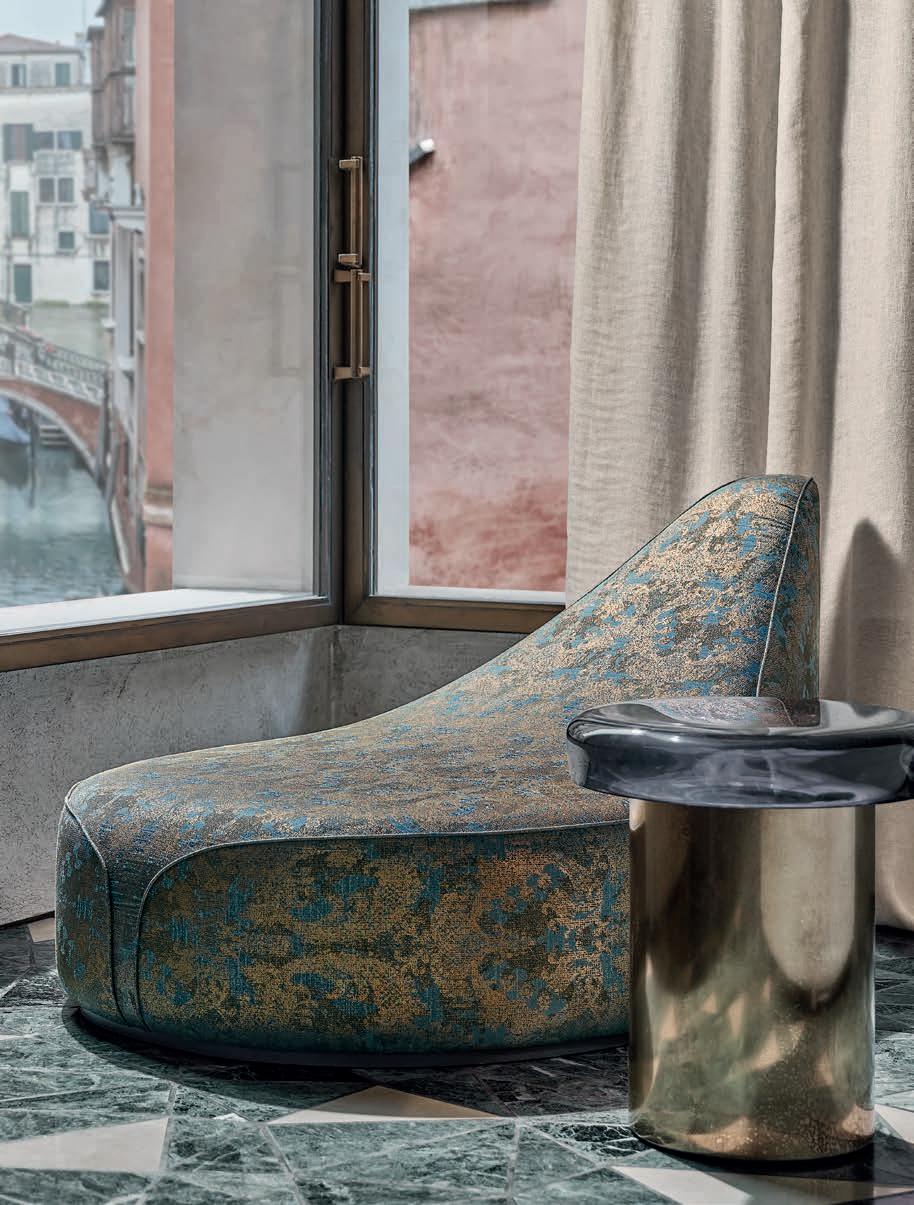 Venice is a boundless source of inspiration. Living there and experiencing it every day allows you to catch those 'fragments' that elude the distracted visitor. You’ll find many of these fragments in the new collection: precious gilding, soft velvet, the reflections of glass, the colours of the great Venetian masters, the movement of water, the patina of time, harmonic contrasts...
