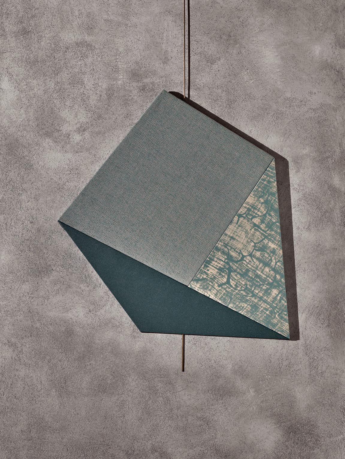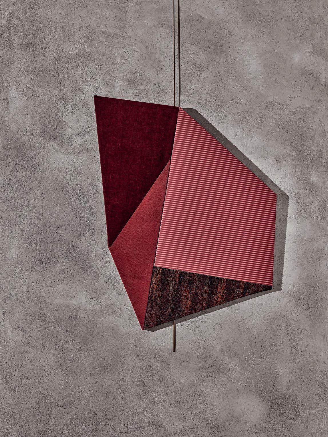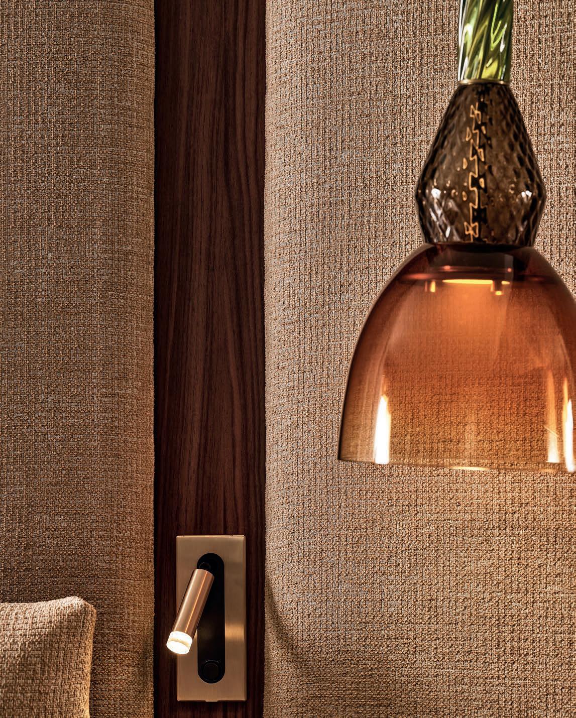 Un tessuto “vetroso” che richiama le creazioni artistiche in vetro dell’architetto e designer veneziano Carlo Scarpa.