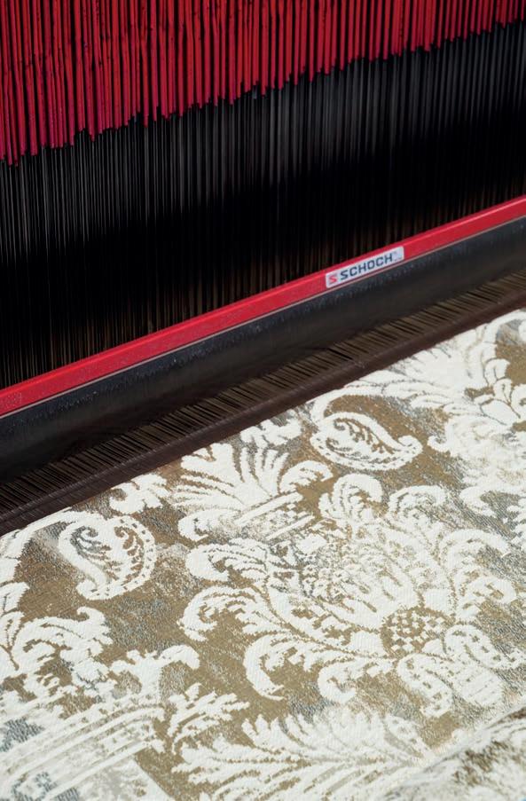 Jacquard materico. Espressione di pura creatività tessile, ha richiesto l’impiego di 7 diverse trame.