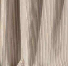A lightweight, wool-blend curtain. Characterised by a very elegant 'narrow stripe' pattern, it comes in 3 colours. When hung, it has a perfect drape, typical of wool.
