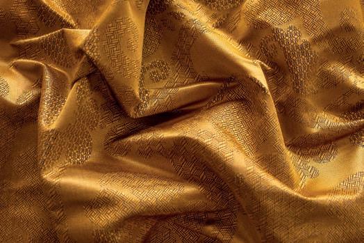 A luxe lampas characterised by a textured golden surface reminiscent of Murano glass with golden lamination century. The combination of glass and gold references the "sommersi" glass created by the Venetian architect and designer Carlo Scarpa. In King, gold, starring alongside the silk, takes on the reflections of the colour of each version and gives an ever-modern touch of glamour.