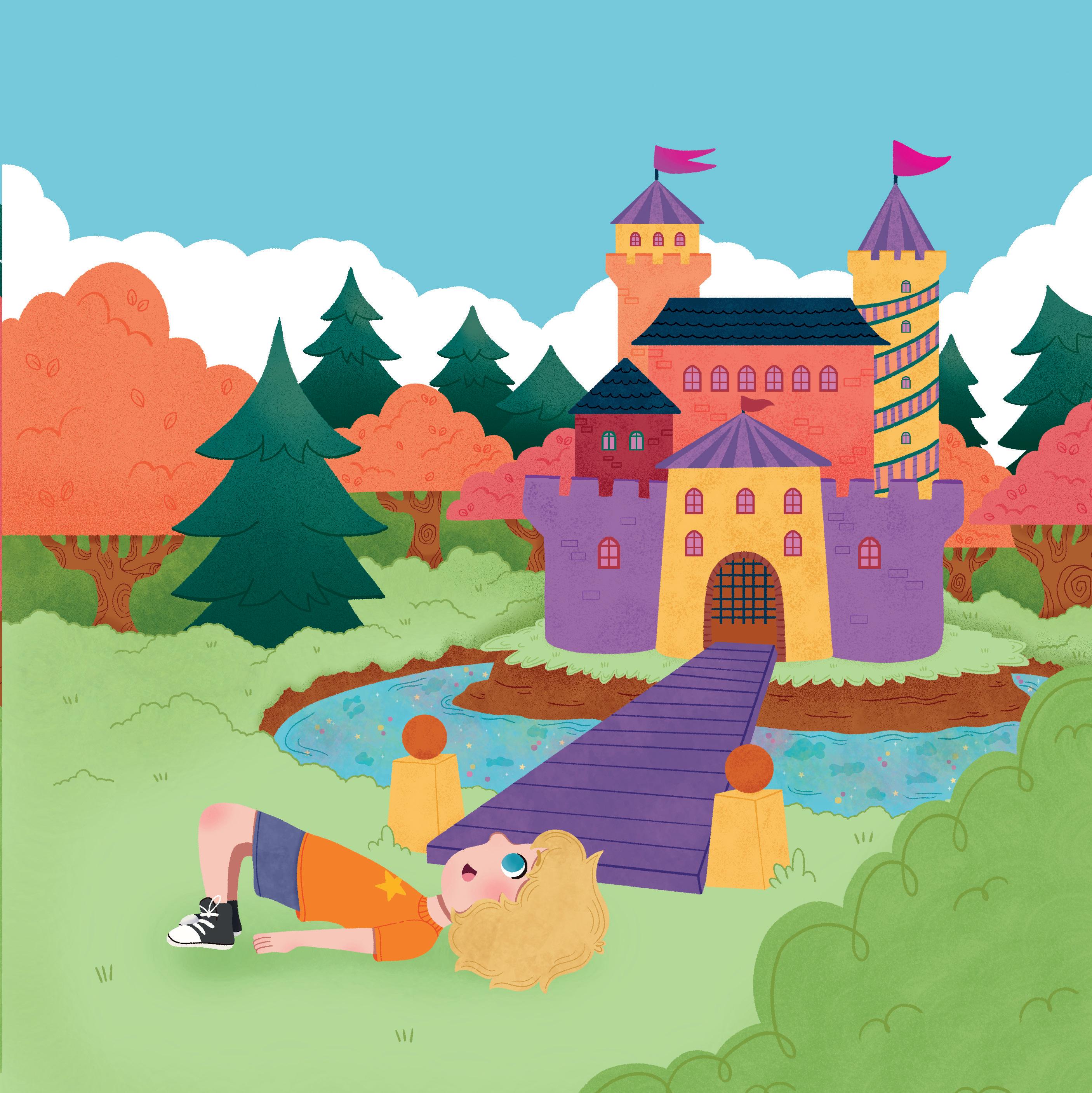 Un castillo mágico, entre árboles y puentes, te abre sus puertas a un mundo de libros y emocionantes aventuras. Al explorar sus páginas, surcarás los mares, aprenderás geometría y hasta soñarás con ser dentista. Sin darte cuenta, cada paso de este viaje se transformará en una postura de yoga, una invitación a mover el cuerpo mientras dejas volar tu imaginación.
