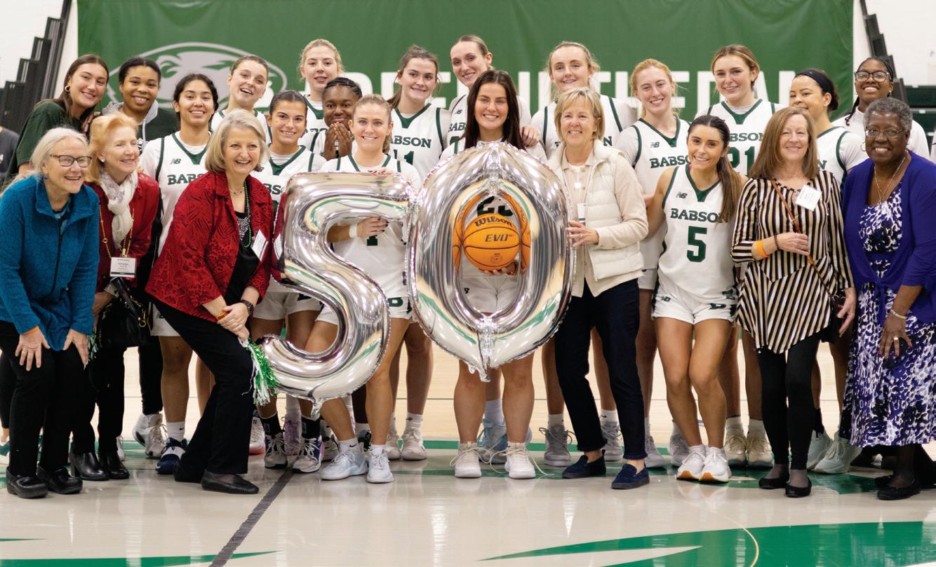 “Thank you to all of our alumni, friends, and families for your unwavering support that continues to enhance our student-athlete experience within the women’s basketball program! With your support we are able to travel out of region, have a full coaching staff, utilize top-notch film software, and so much more. A major highlight of this past season was celebrating the 50th anniversary of our women’s basketball program, which was the first varsity women’s sports team at Babson. We loved having many members of this team back, and it was really special for our current student-athletes to interact with and learn from these incredible women! The support from our alumni means the world and inspires us every day.”