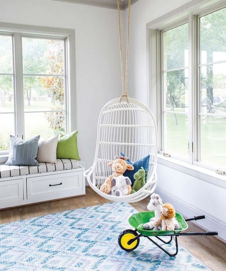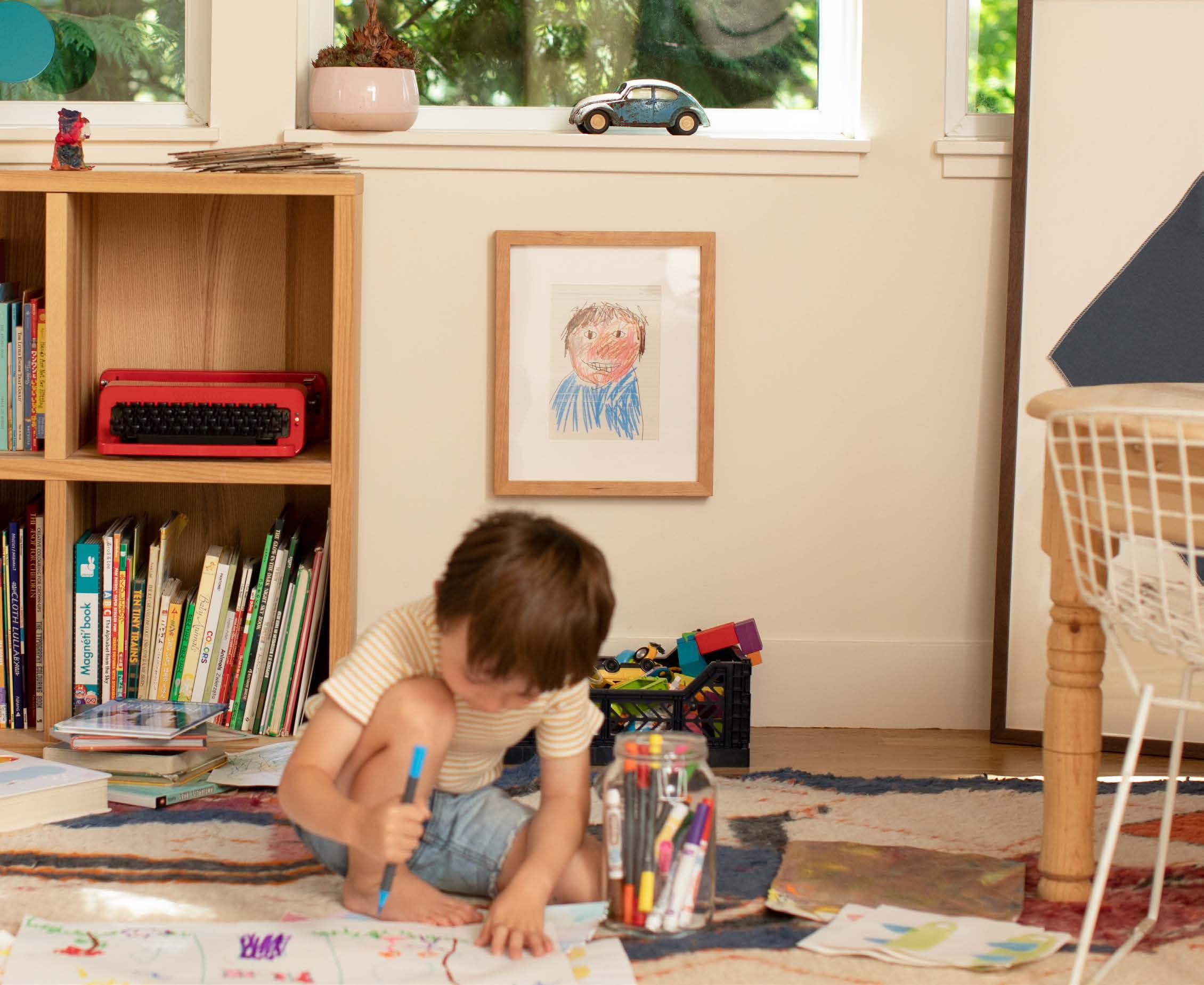 and we have a lot of board games, puzzles, art materials, and Zingo hidden in the built-ins and bookshelves for crafts and games. It’s just a really practical, high-traffic area in our house that feels very ‘us’!”