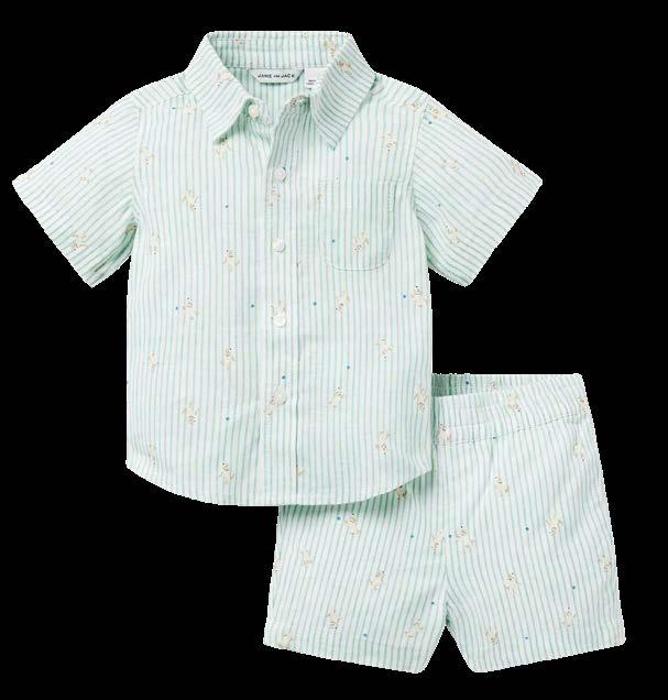 A playful puppy adorns this subtly striped, laid back linen set. $27; janieandjack.com