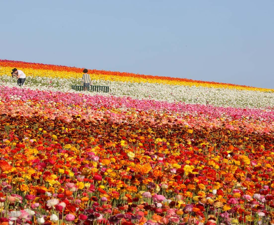 With a 50 acre rainbow field of ranunculus, Sweet Pea Maze, and whimsical Butterfly Garden, the Flower Fields at Carlsbad Ranch is the quintessential spring outing.