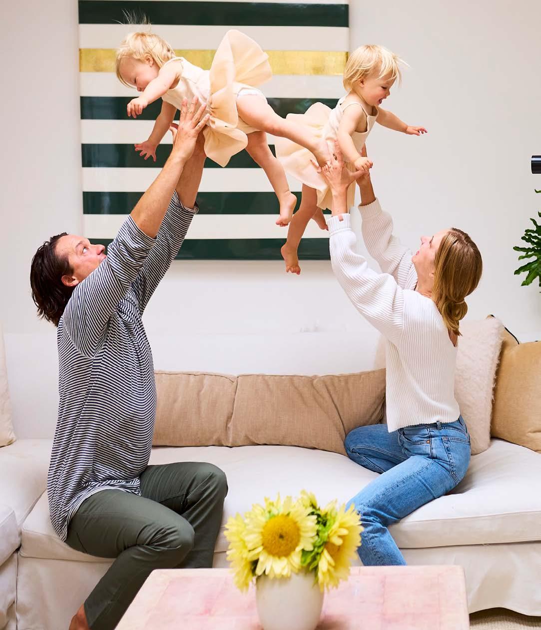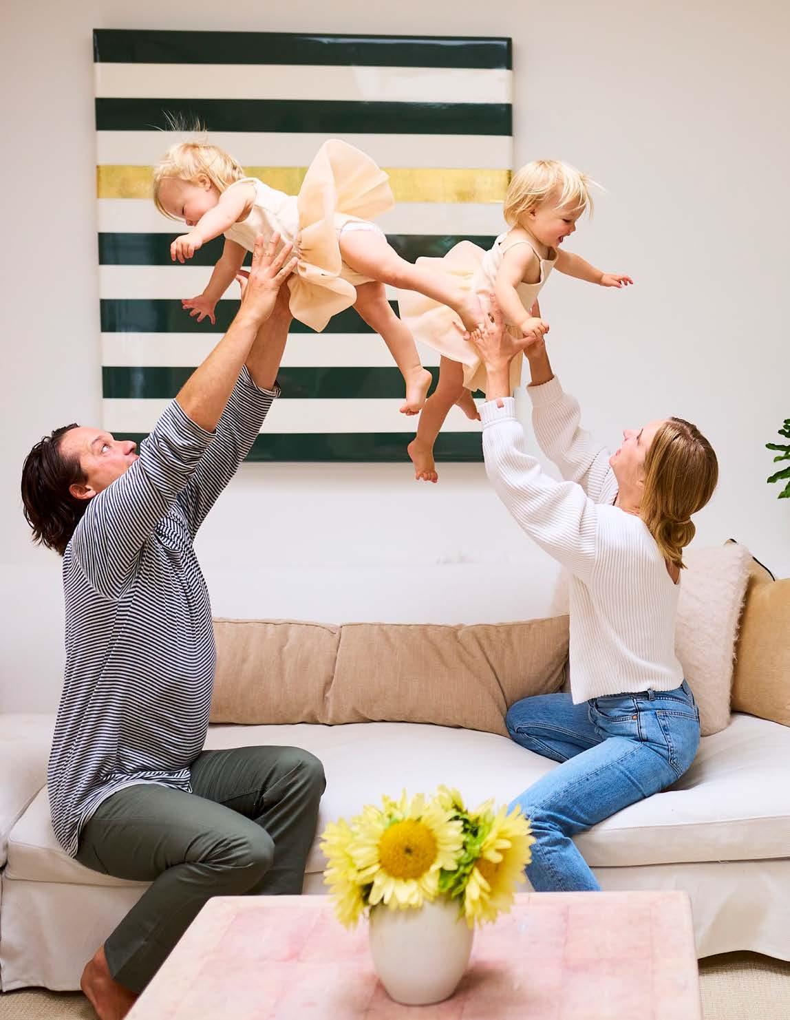 “Zero to one [was harder], for sure. I had no idea what I was doing! I also think you have a sense of a loss of freedom with zero to one, because you go from owning your schedule to being owned by the baby’s schedule, and sometimes you can’t even get out of the house in those early days. It’s just a shift in the way you exist in the world that takes some time to get used to. Someone told me zero to one is an identity crisis, and one to two is a logistics crisis, and nothing has ever been more true. From one to two, it’s just figuring out how to juggle two schedules— that’s the hardest part. One to two is nice because so much of the anxiety of a first time parent is gone; you know what you’re doing! There’s a sense of confidence that comes with experience.”