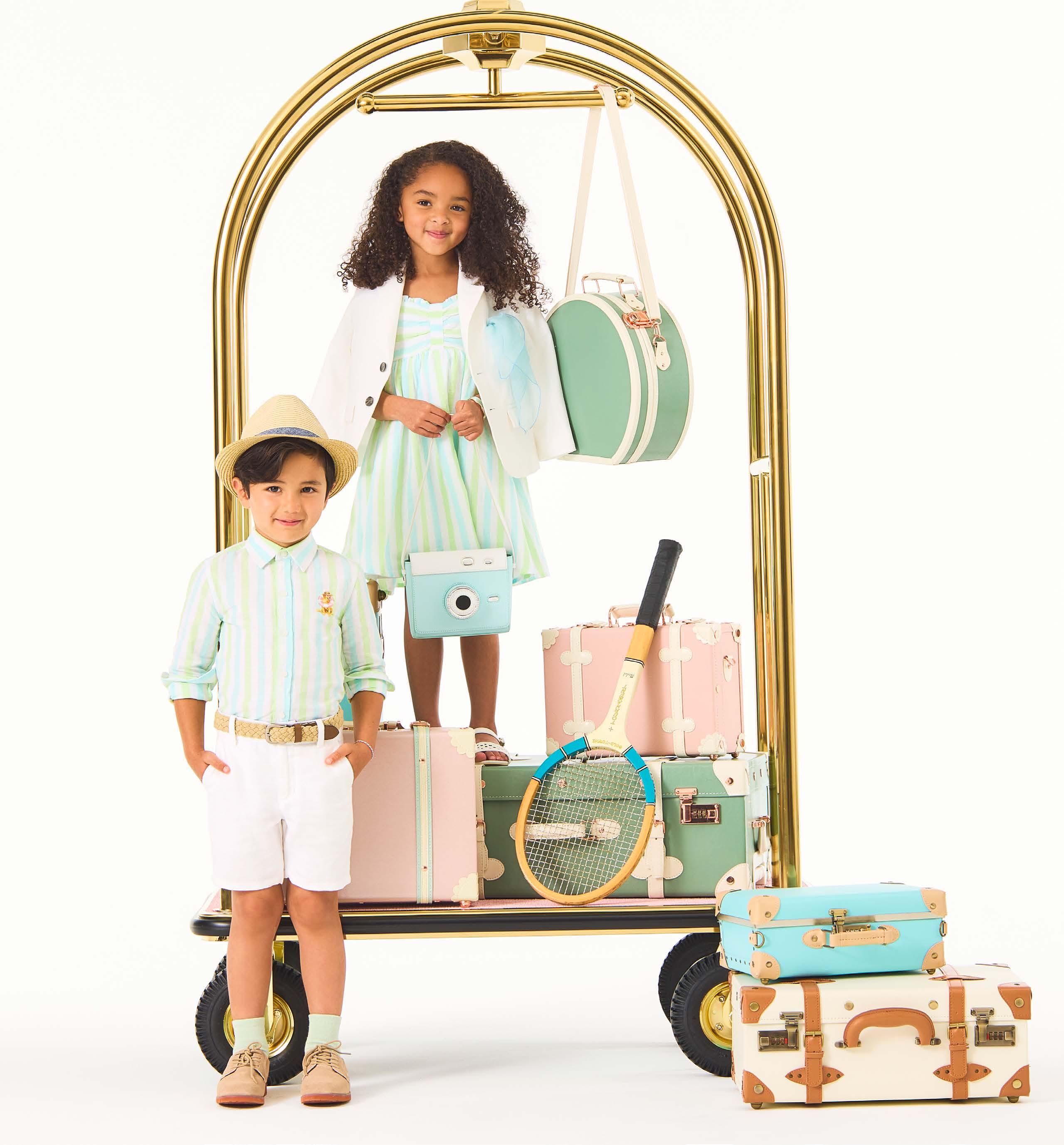 Fine art photographer Gray Malin brings his notorious vacation-loving vibe to this new collab with children’s fashion brand Janie and Jack. Gray’s first official children’s collection inspired by his 5-year-old twins Dove and Max will have you vacation ready in no time, with vintage tennis and swim looks, cabana sets, beach and surfboard emblems, and even t-shirts featuring his iconic dog! Available now at janieandjack.com