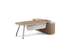 Inspired by the gentle curve of a riverbank, the Kezro Executive Desk features a generous 2200mm rounded Light Oak MFC top with a warm, natural grain and a Light Beige undertone, evoking serene landscapes.