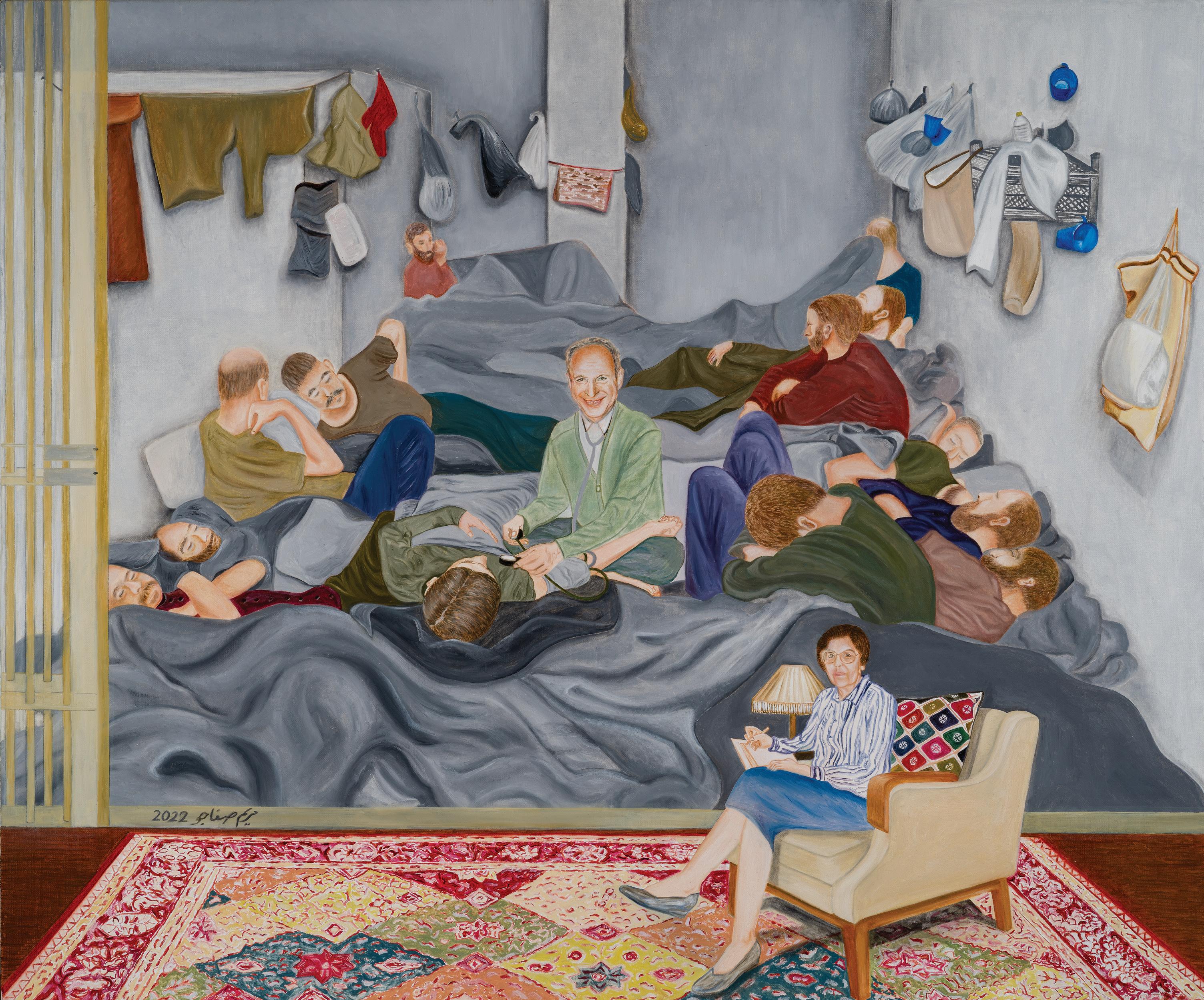 Maryam Safajoo’s paintings are tragic, seductive, original, poignant, and politically charged. She is of the Bahá’í Faith, one which has been treated with extreme brutality by the Iranian regime. Her process involves in-depth interviews with Bahá’í people who have experienced this brutality. She then painstakingly paints their moving stories. This is a brilliant and generous idea. She simultaneously charms us with her folksy, even faux naïve style and confronts us with the horrible reality of her subject matter. This strategy adds great power to her work and makes her art complex, layered and nuanced. Her work is difficult yet accessible, serious without being somber, beautiful without being decorative, politically charged without being just didactic. The work is both personal and universal. The personal experiences of her subjects speak of one of the crucial moral tragedies of our time. Her work is filled with anger but also with love, which makes it complex and compelling. Seldom have I encountered an artist so intensely and honestly involved in her vision. Her sincere urgency and her ambition make her a rare artist indeed.