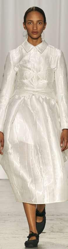 One of the most attractive collections which resonated with our goals was that released by Cecilie Bahnsen at her first runway show in the French capital at Palais de Tokyo. The collection brings her modern Scandinavian interpretation of Parisian couture fabrics and techniques. Structural silhouettes, delicate bows, a glowing sheen and fabrics that seemingly float make this a truly dreamy collection.