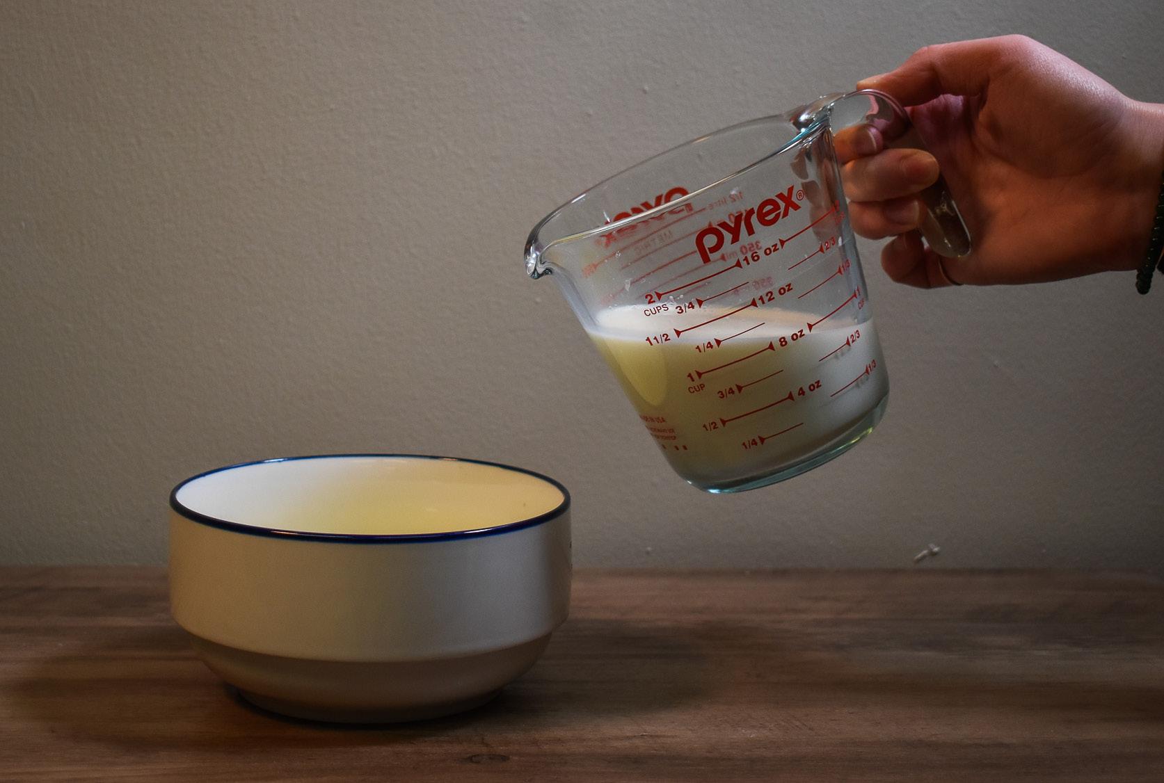 1. In a pot over medium-low heat add the butter, making sure it is first cut up into some smaller pieces. Let the butter melt and wait for it to start getting foamy — this is normal. Keep stirring until you see some amber color coming through under the foam. Take the pot off the heat and let the butter cool while you get started on the rest.