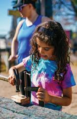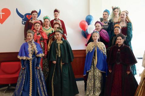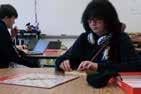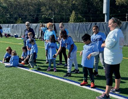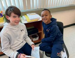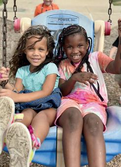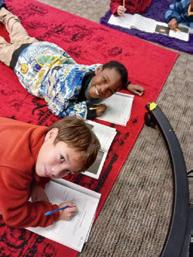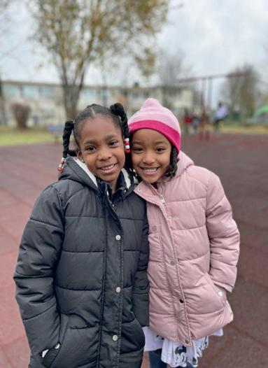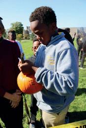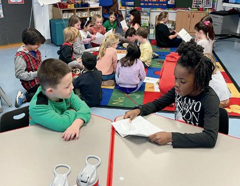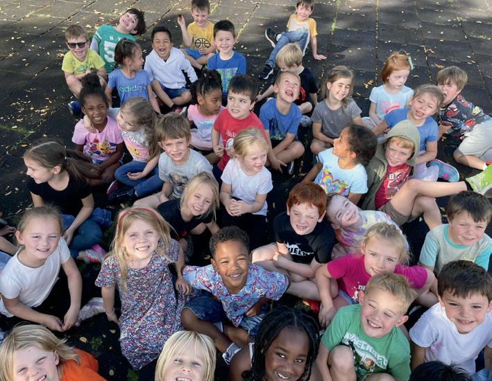 A wide variety of student ages are shown on the spread; typography shows keen knowledge of white space with justification toward the inside of the spread and copy ragged to the outside.