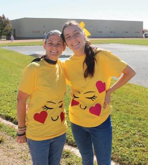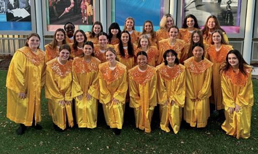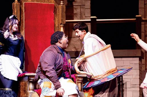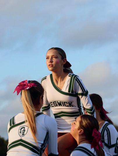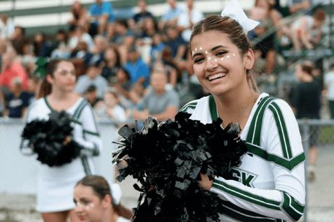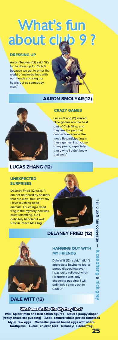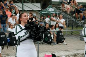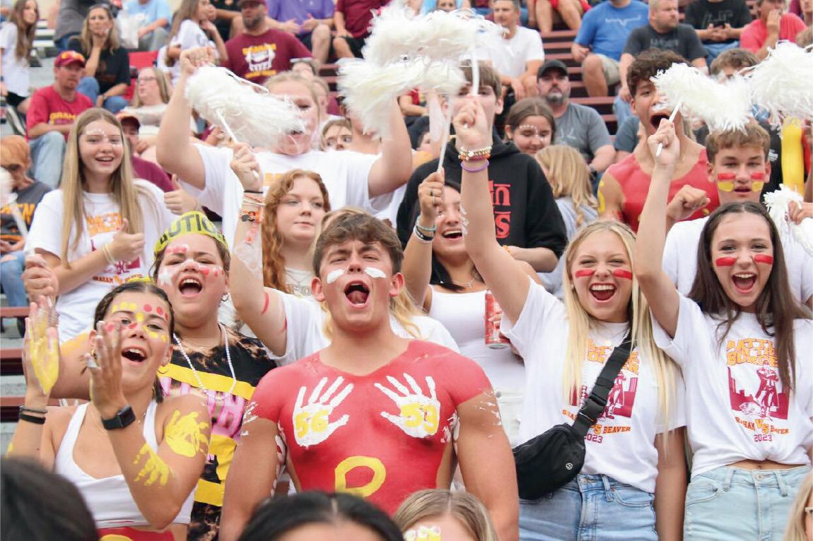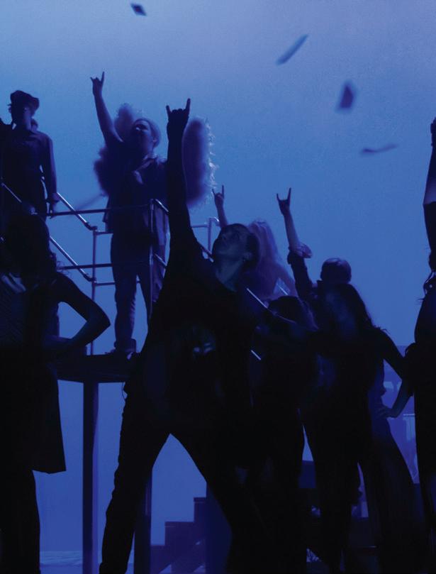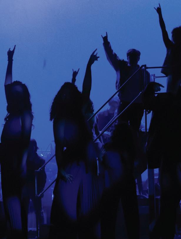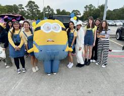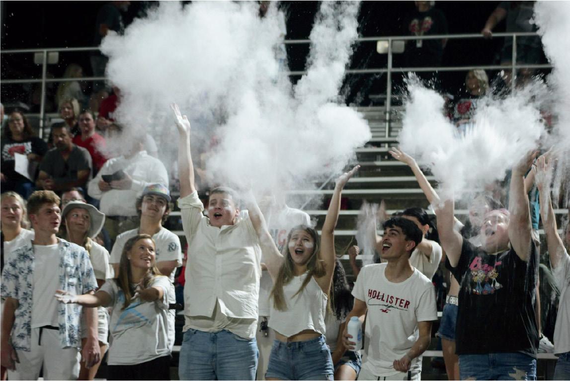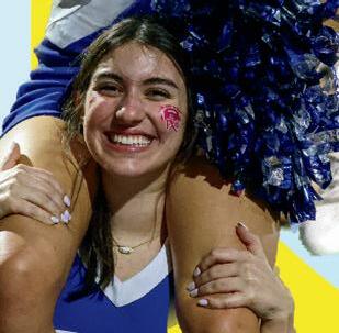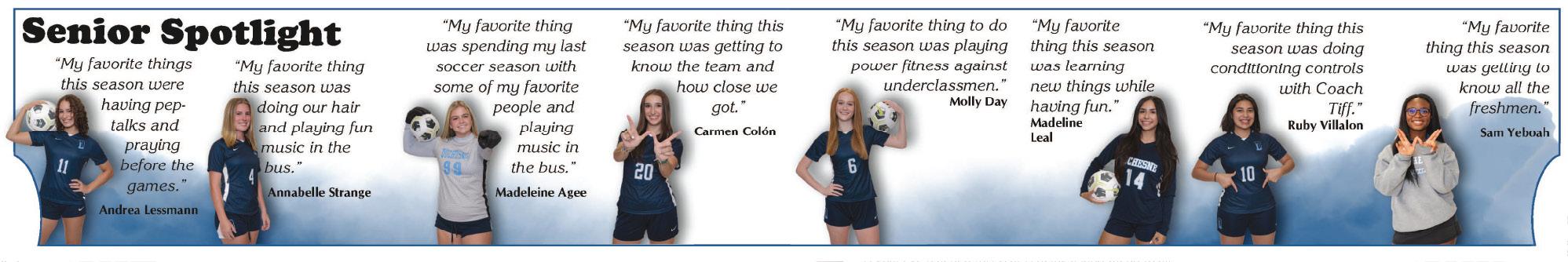 In line with the theme “Lights, Camera, Homecoming,” the coverage features a creative blend of different student cutouts combined into one cohesive element while also maintaining balance between square photos and cutouts throughout the spread.