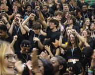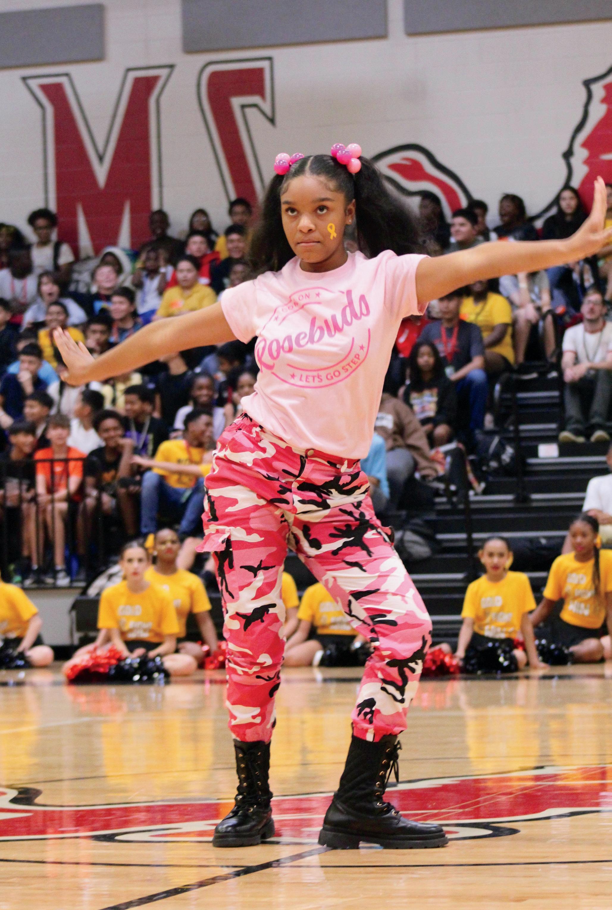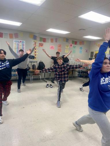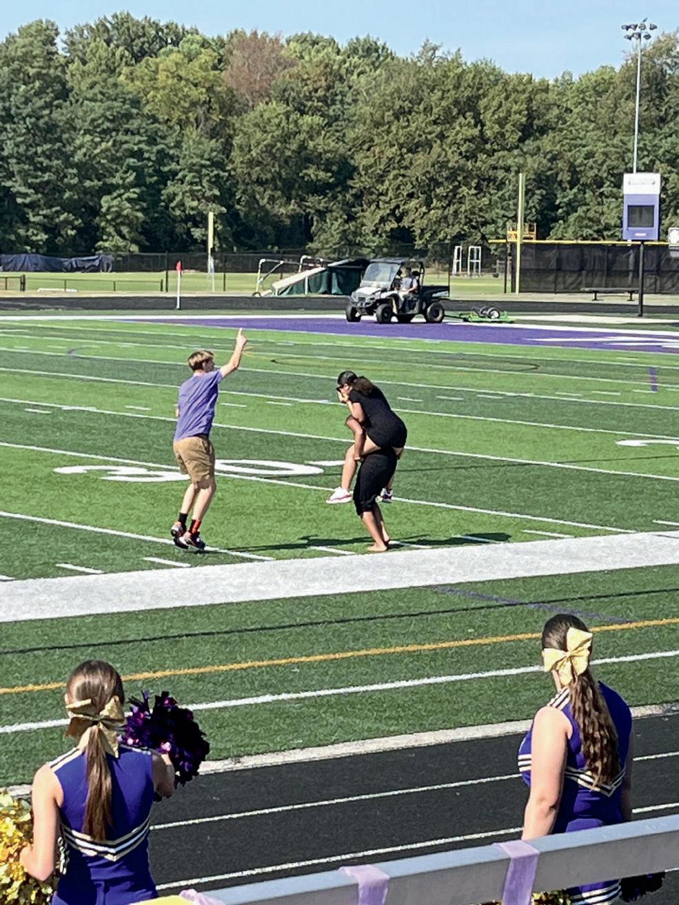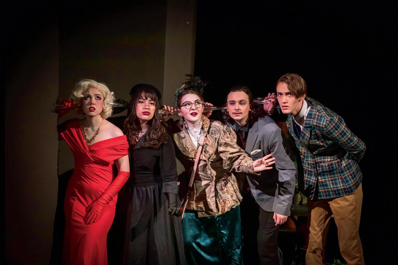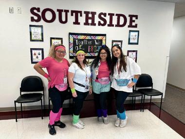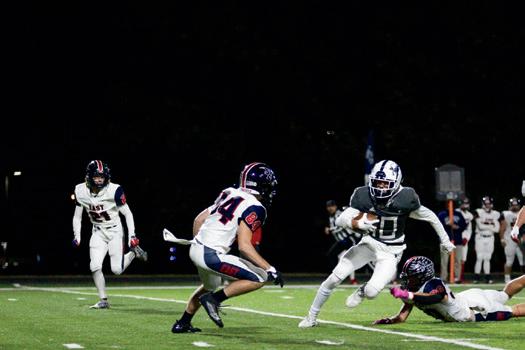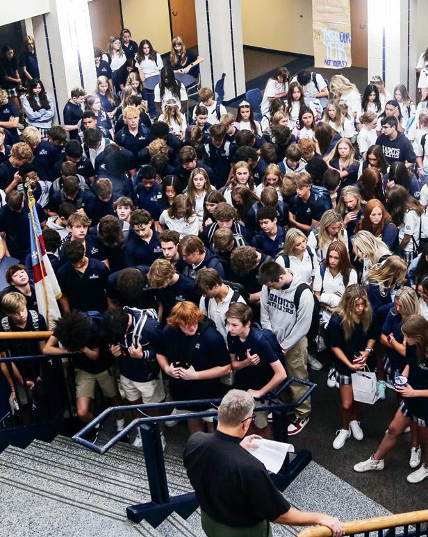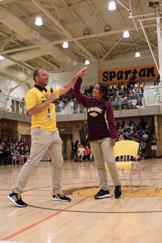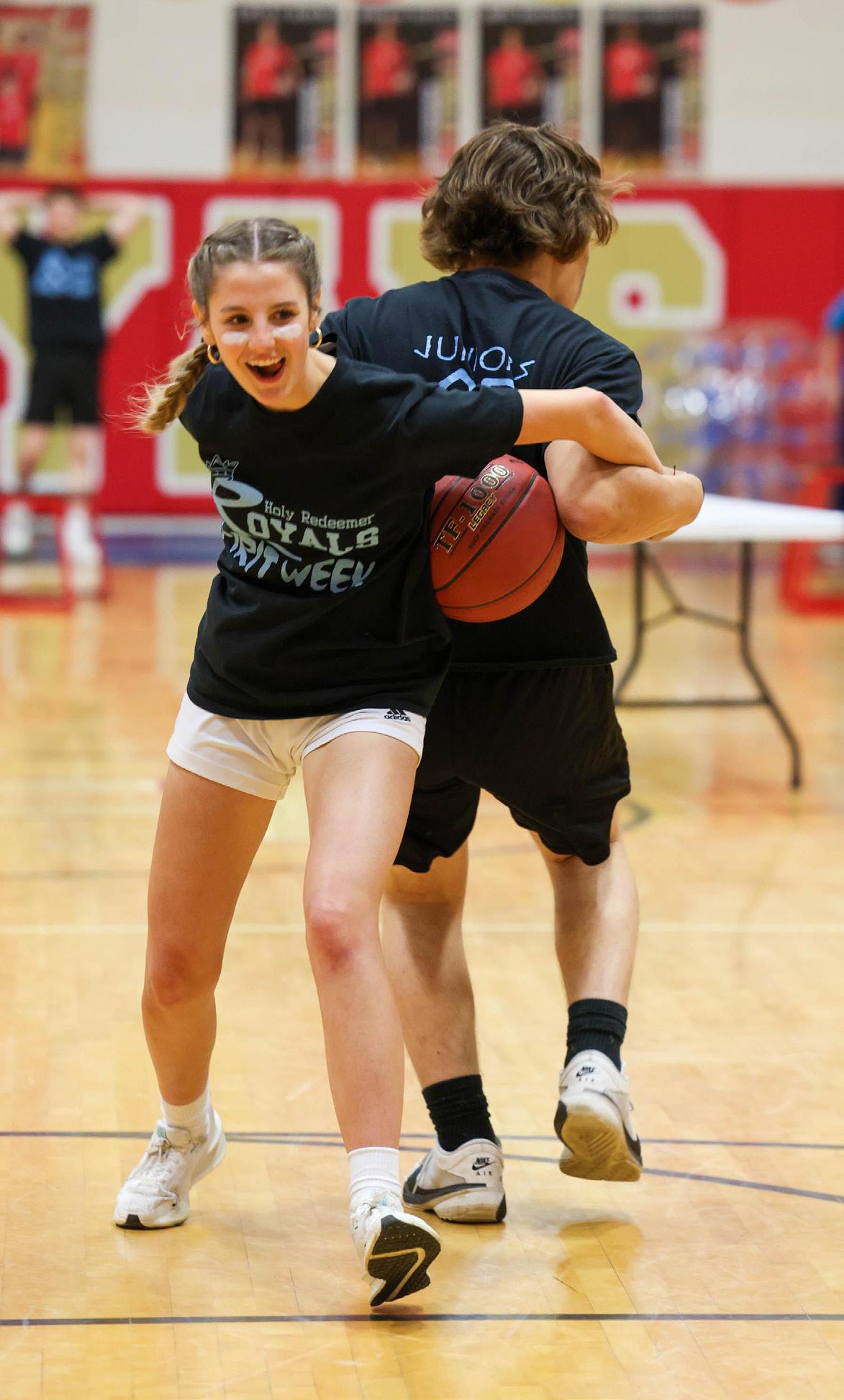 In line with the theme “Lights, Camera, Homecoming,” the coverage features a creative blend of different student cutouts combined into one cohesive element while also maintaining balance between square photos and cutouts throughout the spread.