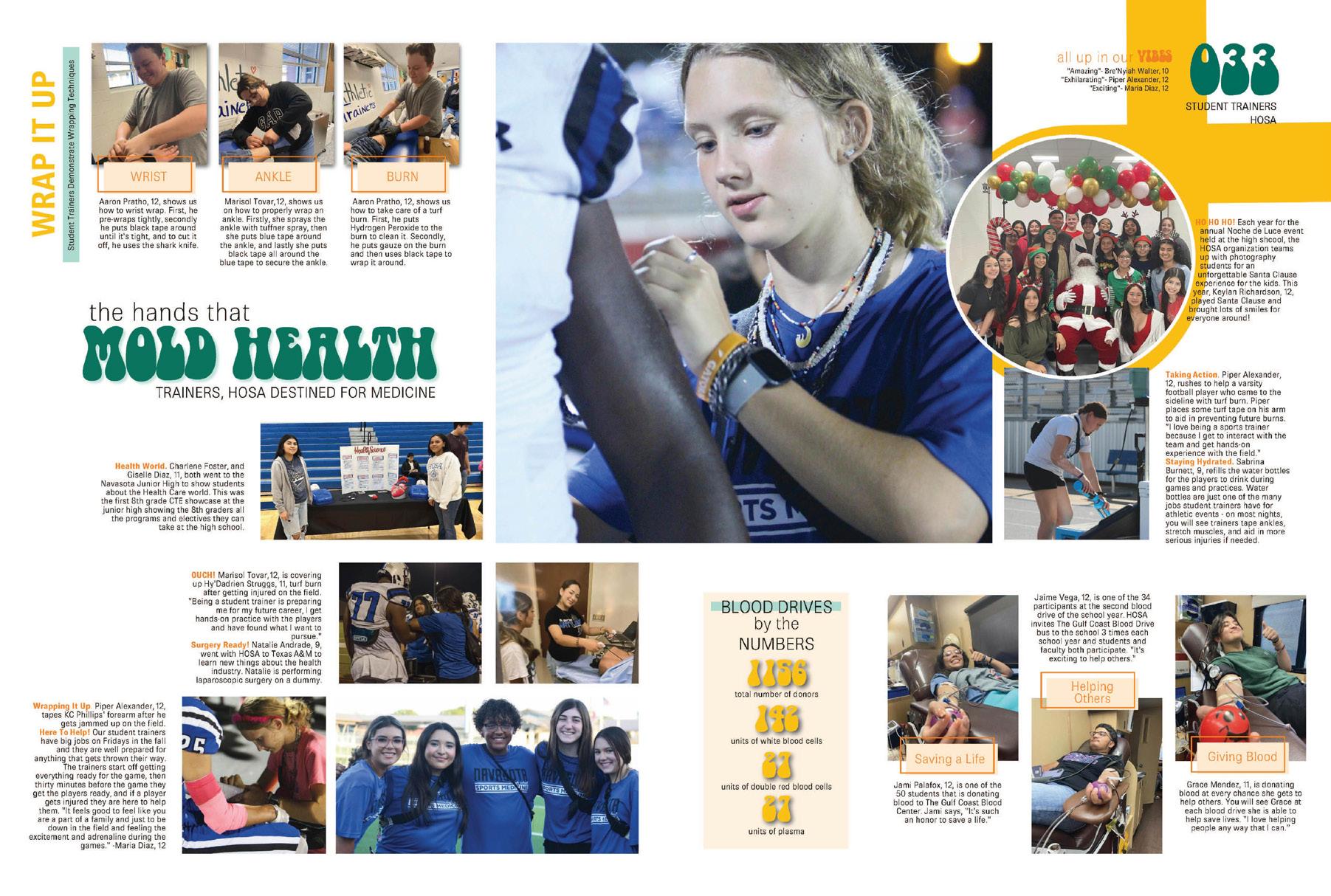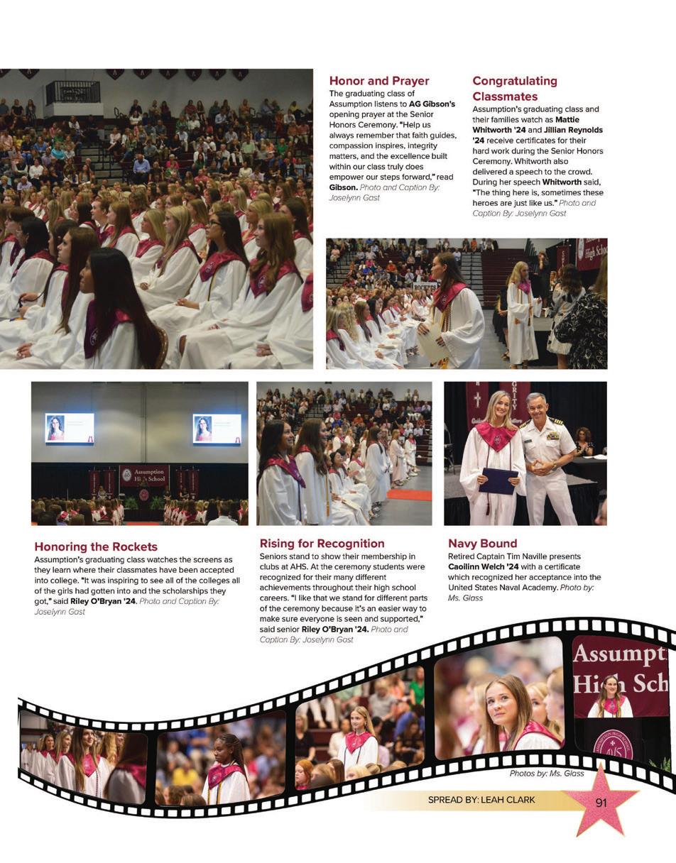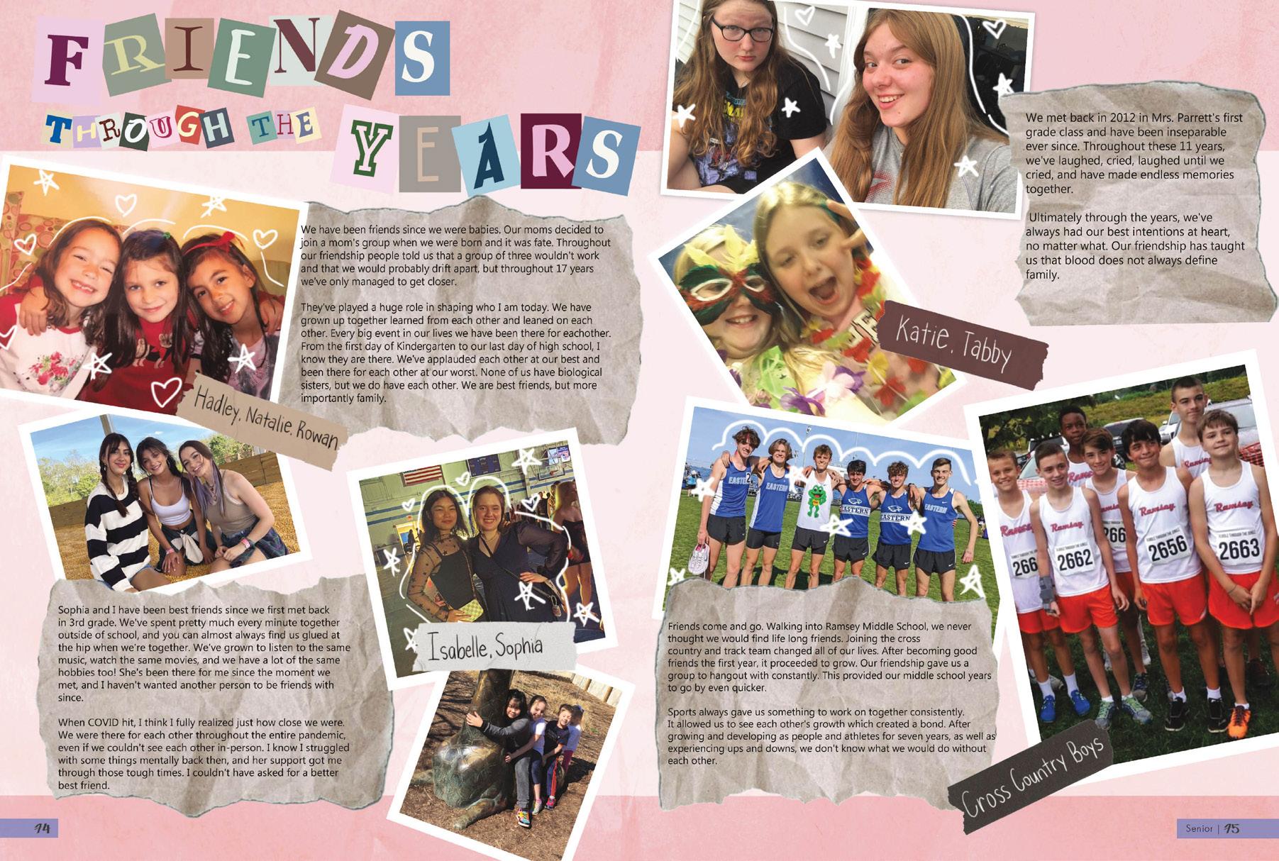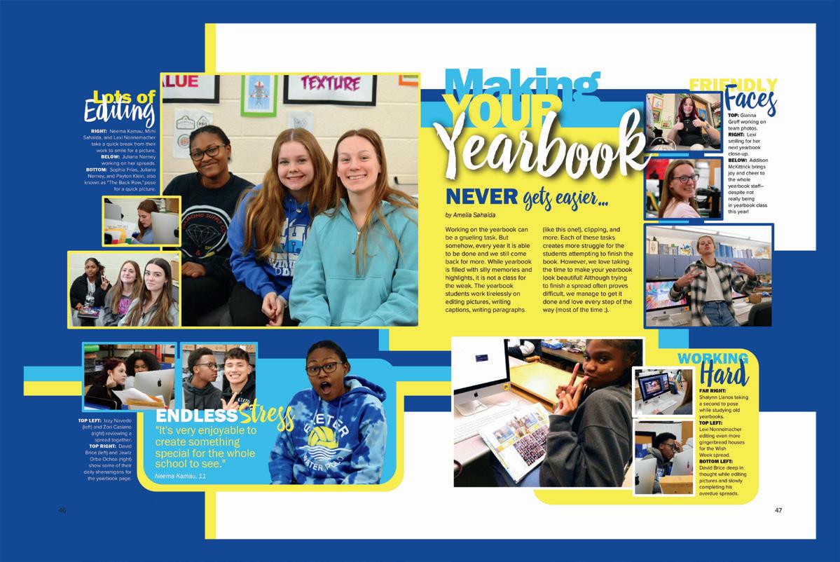 Selecting colors that enhance the photographs, along with a variety of headline styles, adds visual appeal to this spread. Additionally, the thoughtfully crafted captions effectively communicate the narrative of the 2024 yearbook staff.