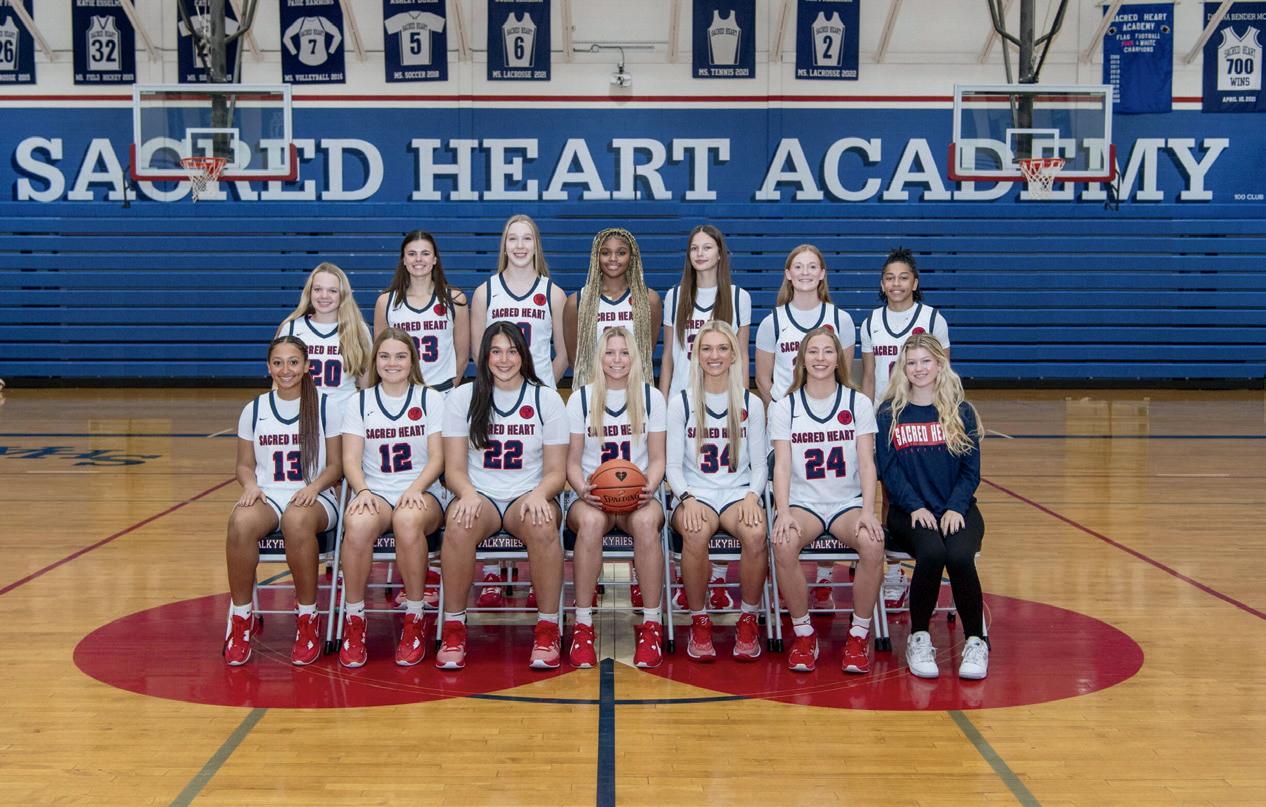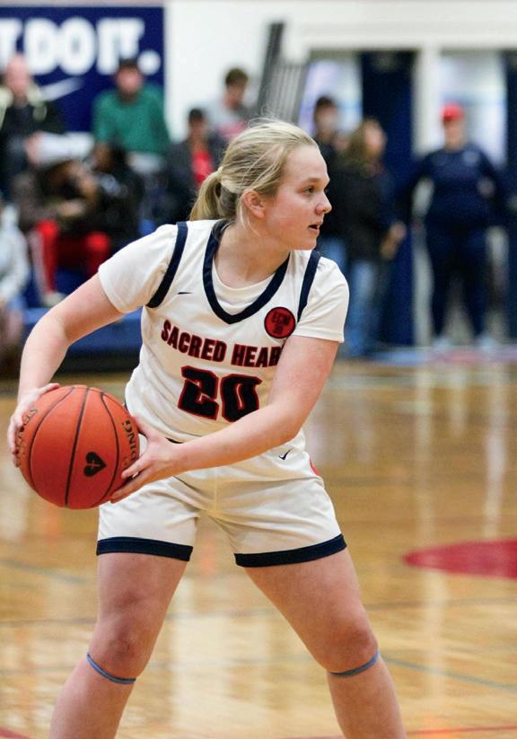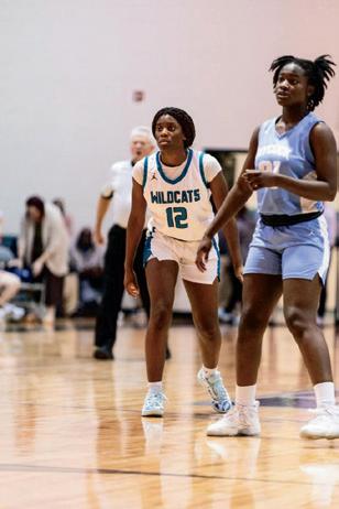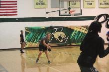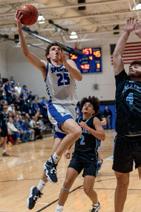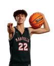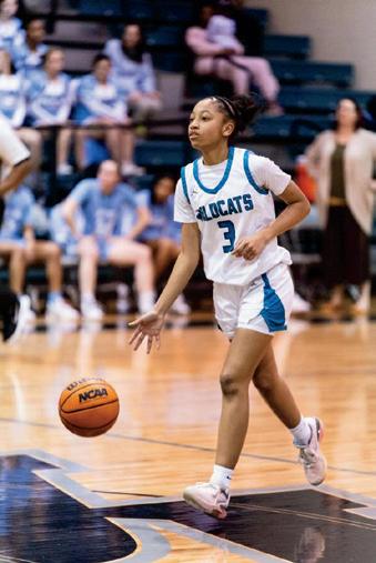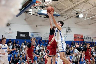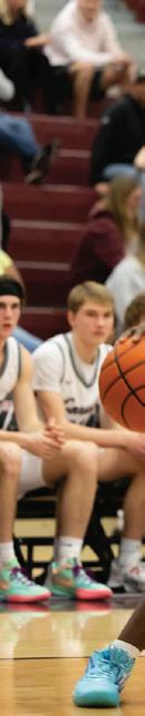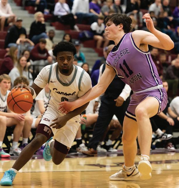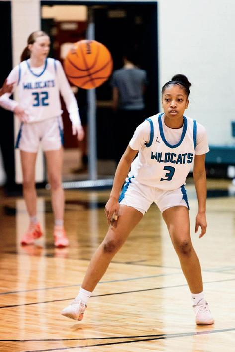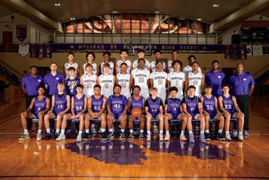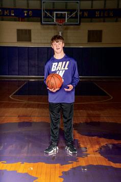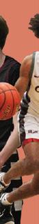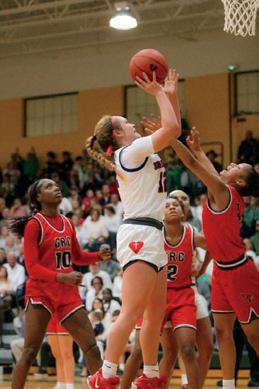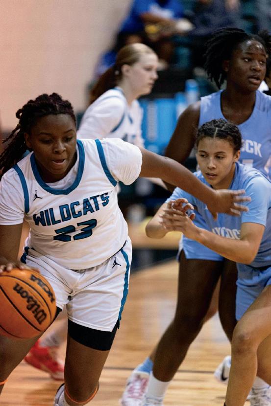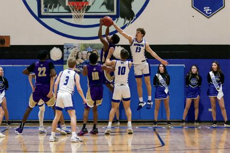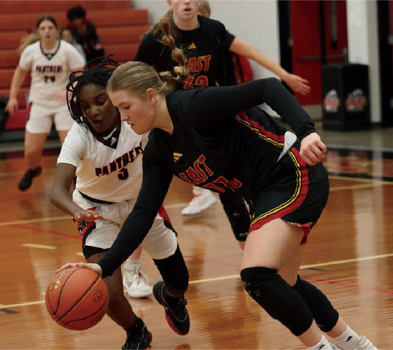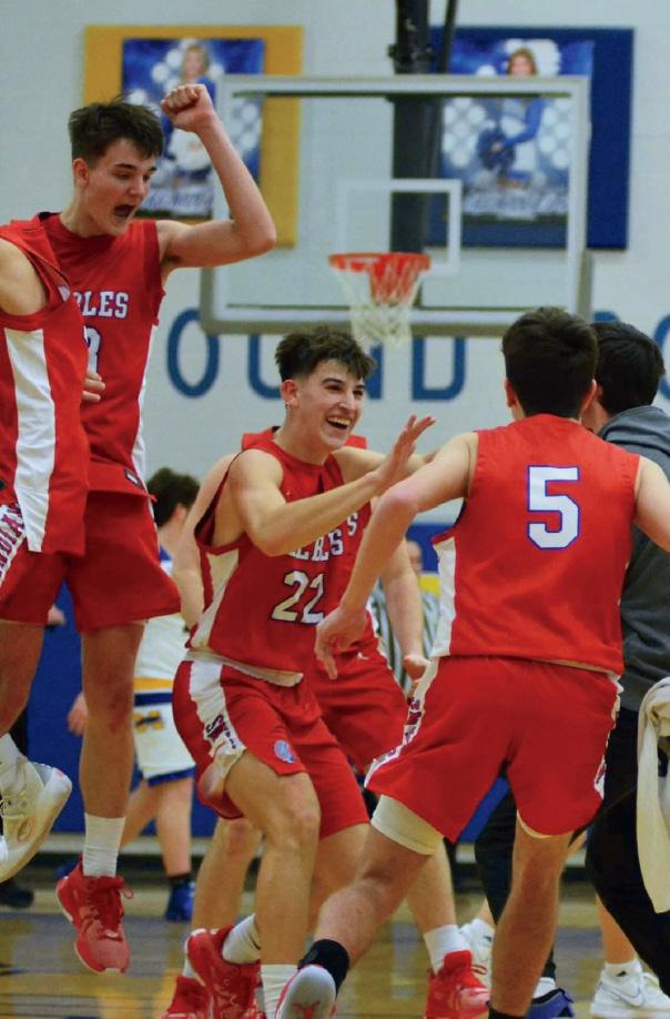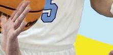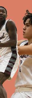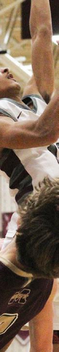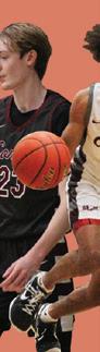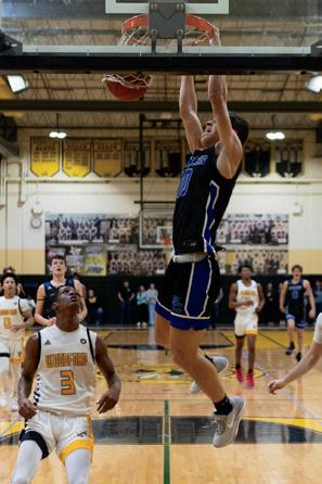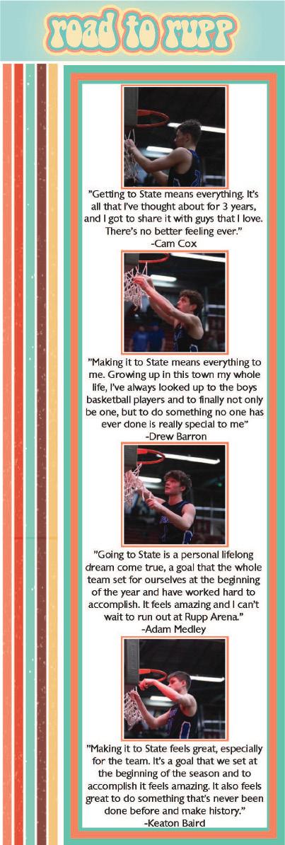 Highlighting basketball players with cutouts in this spread enhances its visual appeal and elevates it beyond traditional square photo designs, while also showcasing various aspects of the season.