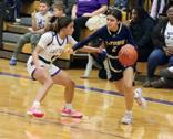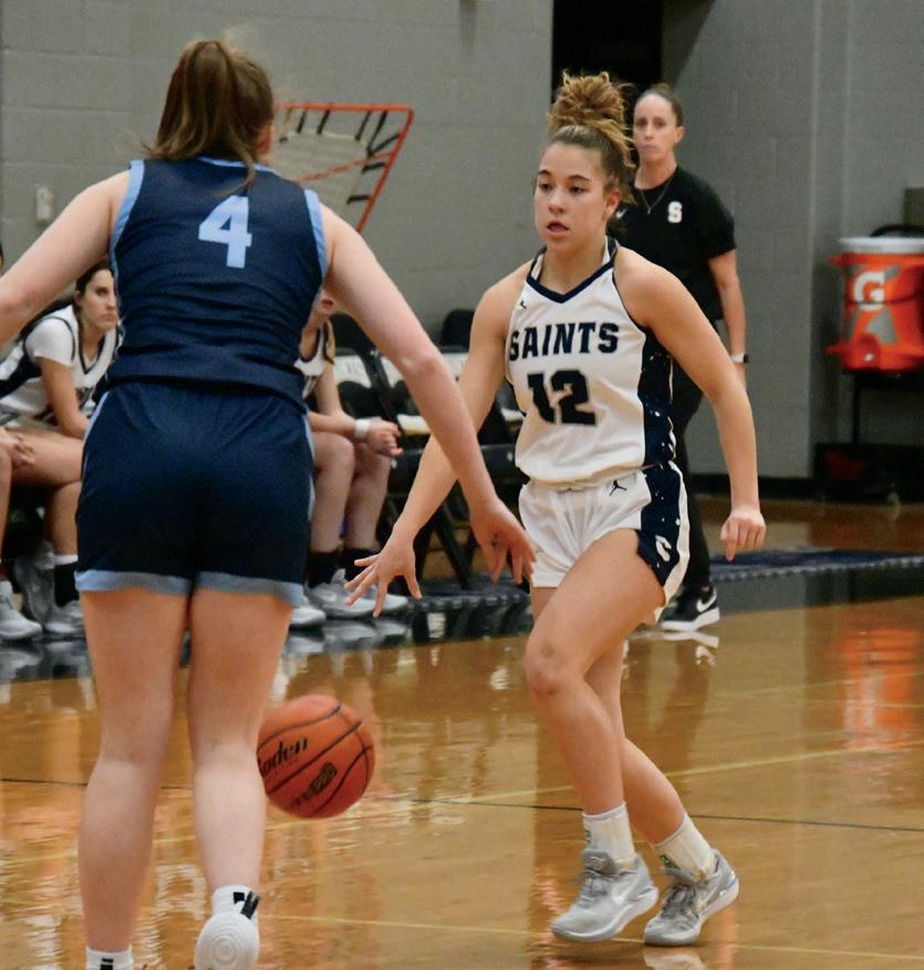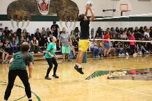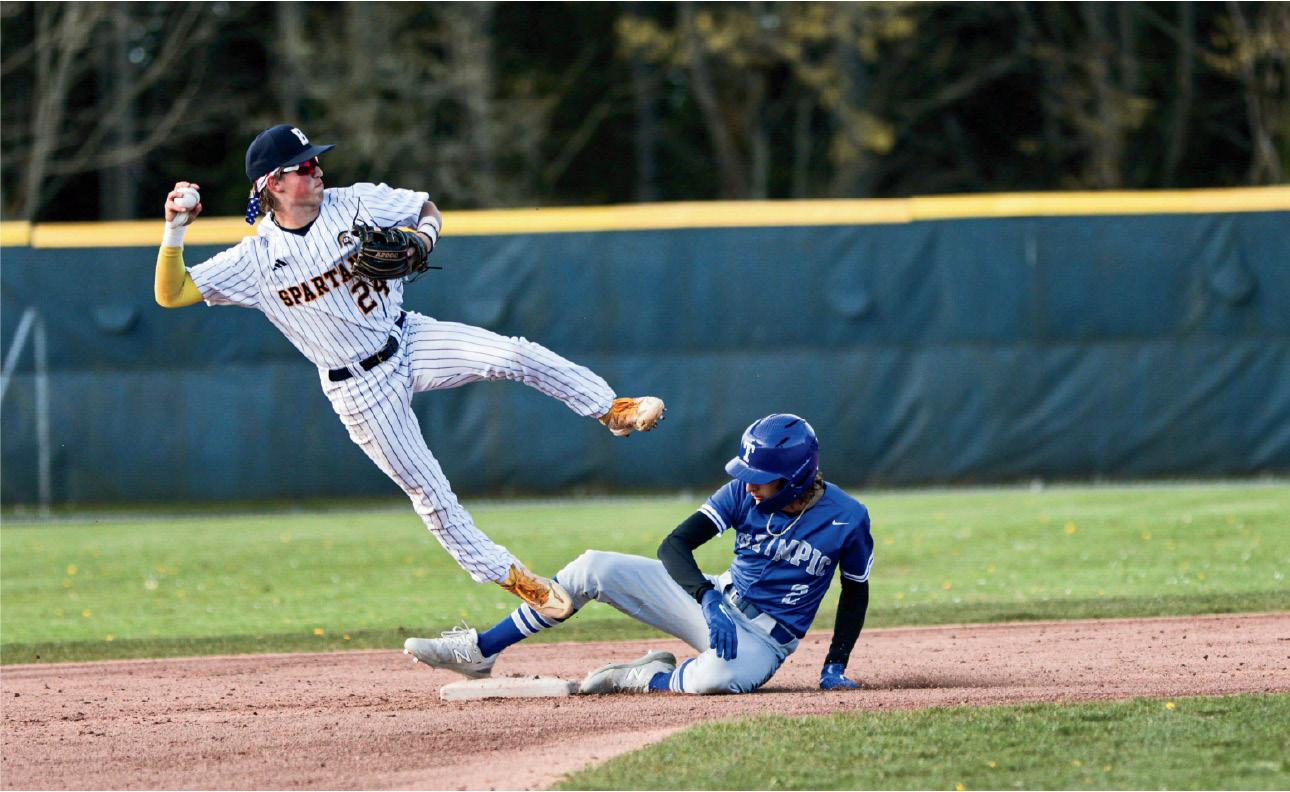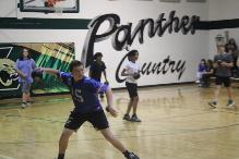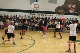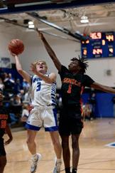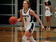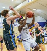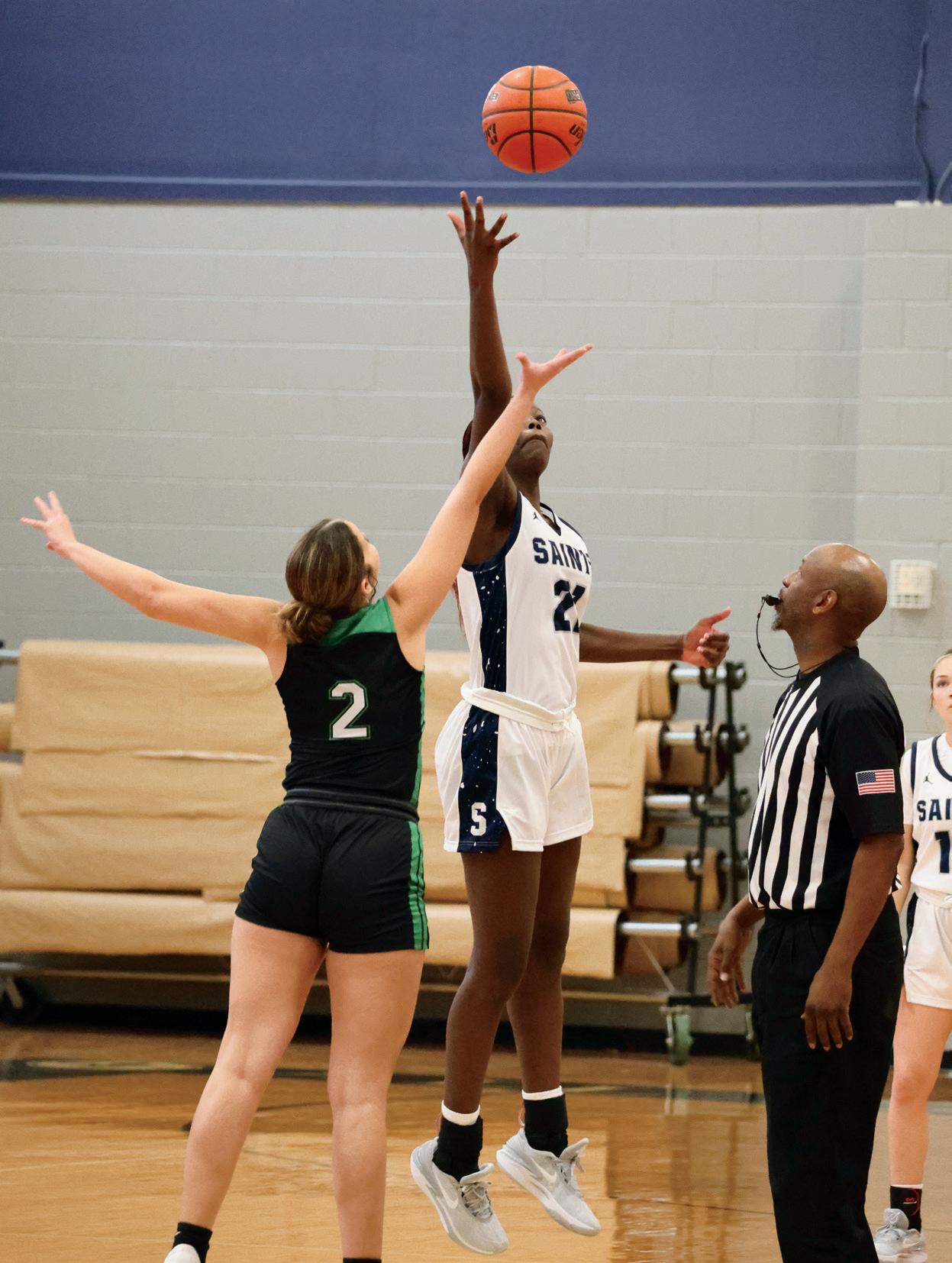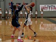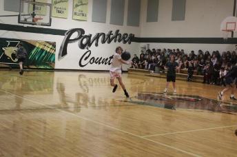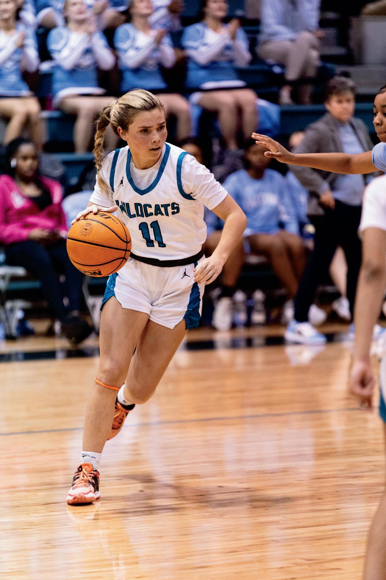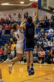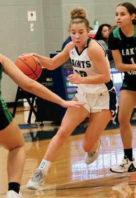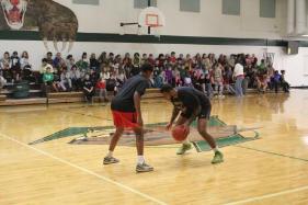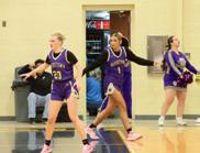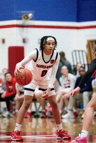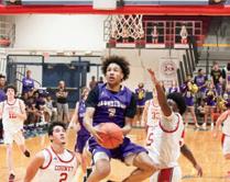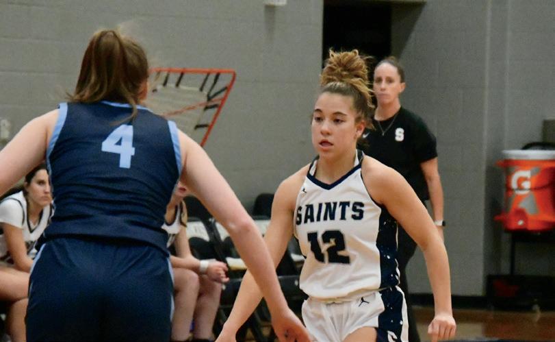 Highlighting basketball players with cutouts in this spread enhances its visual appeal and elevates it beyond traditional square photo designs, while also showcasing various aspects of the season.