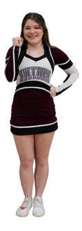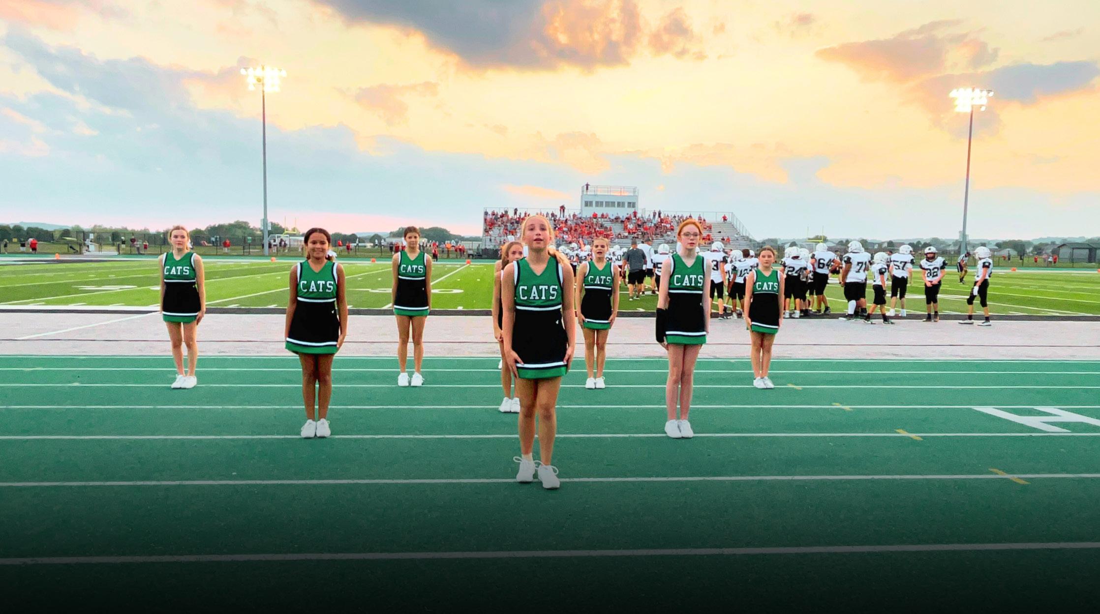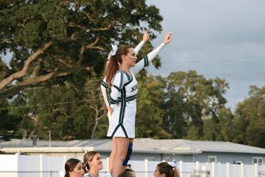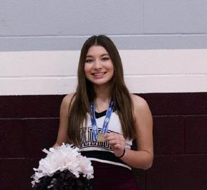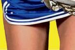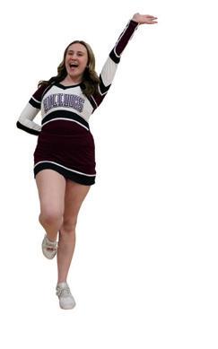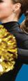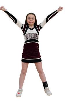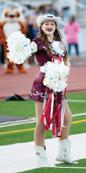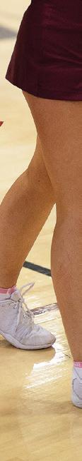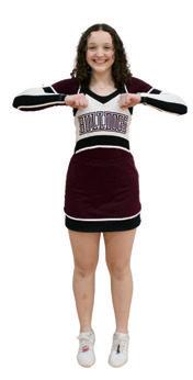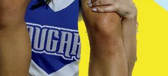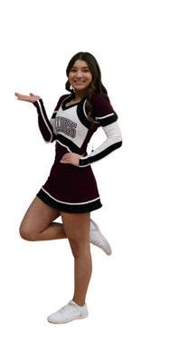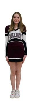 Statistics point out new information about the cheerleaders. A simple black and white photo adds to the visual variety.