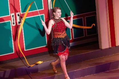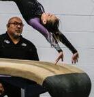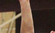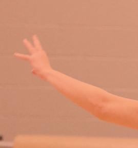 This spread design deviates from the conventional diagonal layout with a single wavy line that divides the page in half. The incorporation of various cut-outs highlights the diverse movements of the gymnasts.