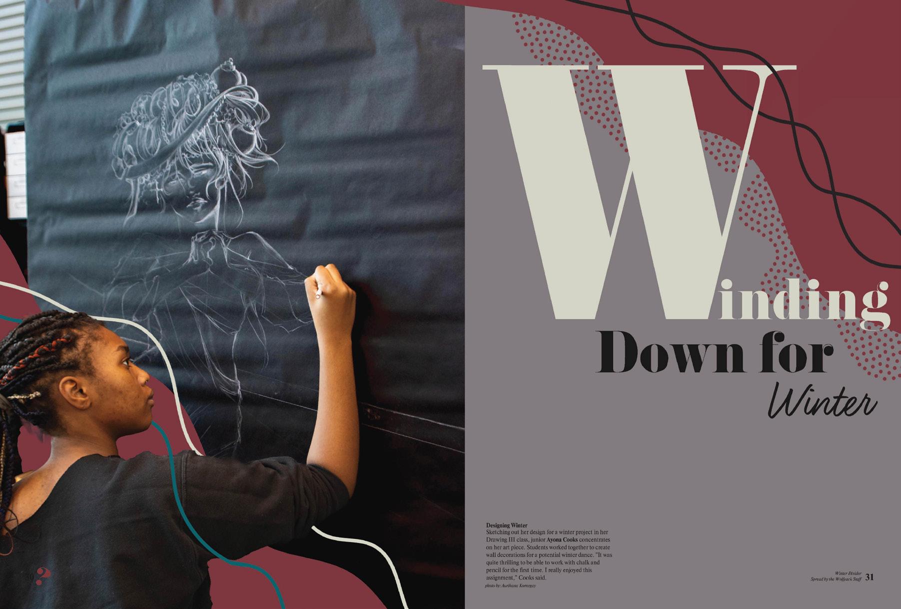 The Cougar Pride staff upped their typography game in “For the Record”. Meticulously designed headlines can be found on nearly every spread in this retro-themed book. The visual theme is clear in wavy lines and nostalgic fonts.