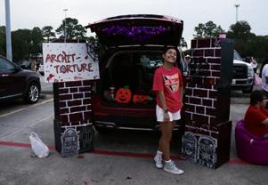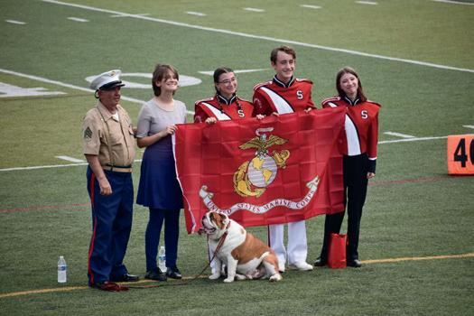 The headline package highlights two big homecoming events - the parade and bonfire - featured in the spread while unifying them under the overarching theme of homecoming.