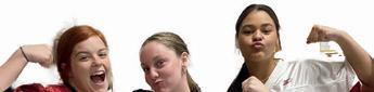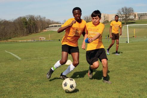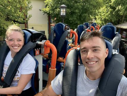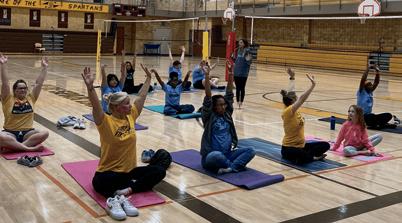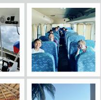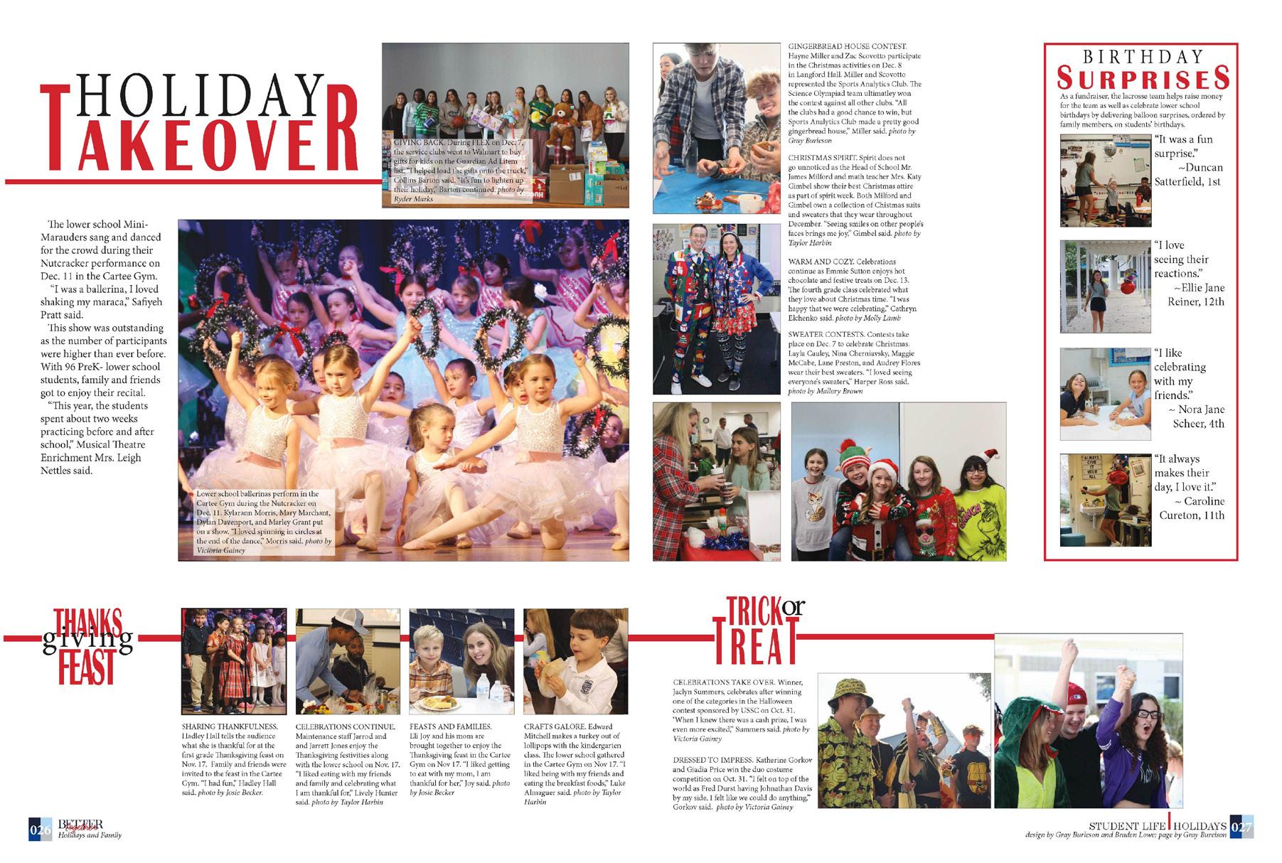 Blended coverage on this student life page brings various group trips to life. The use of colored type in all body copy creates consistency on the spread.
