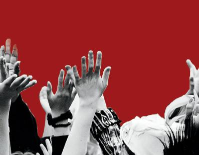 The Saint staff uses strategically placed shapes cutting layouts in portions to let us know “That’s just the half of it”. Colored triangles covering a fraction of a spread and white lines cutting dominant images in half created clear visual theme development.