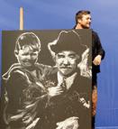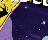 This eye-catching layout showcases a silhouetted background image as the foundation of this layered design. The headline design ties in with the retro theme and complements the adjacent cut-out.