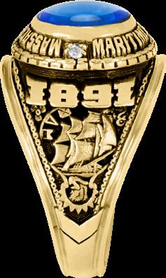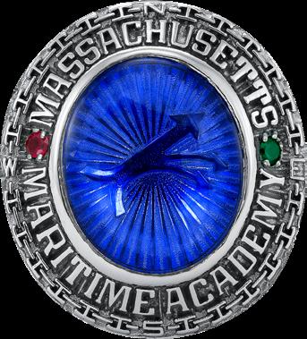 Your Class of 2025 SGA Representatives have worked hard over the past few months to come up with a design that was not only special to our class, but a time stamp in our history here at the Academy. The main detail within the ring is the Patriot State II. For the first time in our school’s 130year history, we will be sailing on a brand new, specially designed training ship to improve the future for Merchant Mariners. Behind it is the railroad bridge, a symbol of the Cape Cod Canal. Shining through is a sunrise to remind you of those morning runs and PT during Orientation. The sunrise also is a symbol that even when times are tough, every day is a new day to conquer and make a difference.