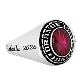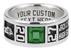 Stand apart from traditional designs with one of four elegant 10mm ring faces to display your high school. Then choose your stone color, metal and engraving for a look that’s both highly personalized and sentimental.