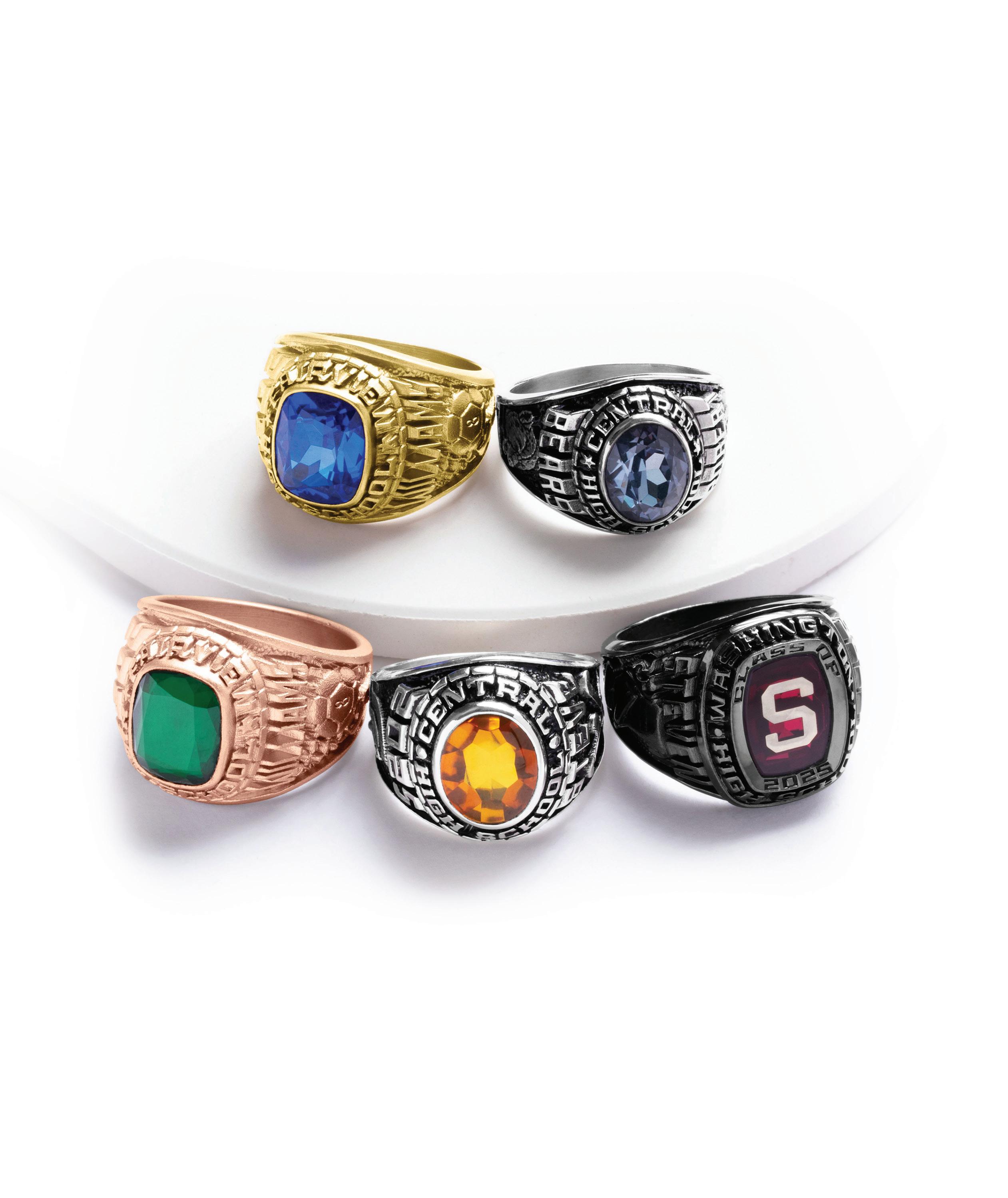 Craft a charming, spirited class ring to remind you of your greatest inspirations such as friends, family and special occasions. These intricately elegant ring designs allow customizations such as birthstones and specialty stones in a variety of cuts. Each produces a look as impressive as your accomplishments.