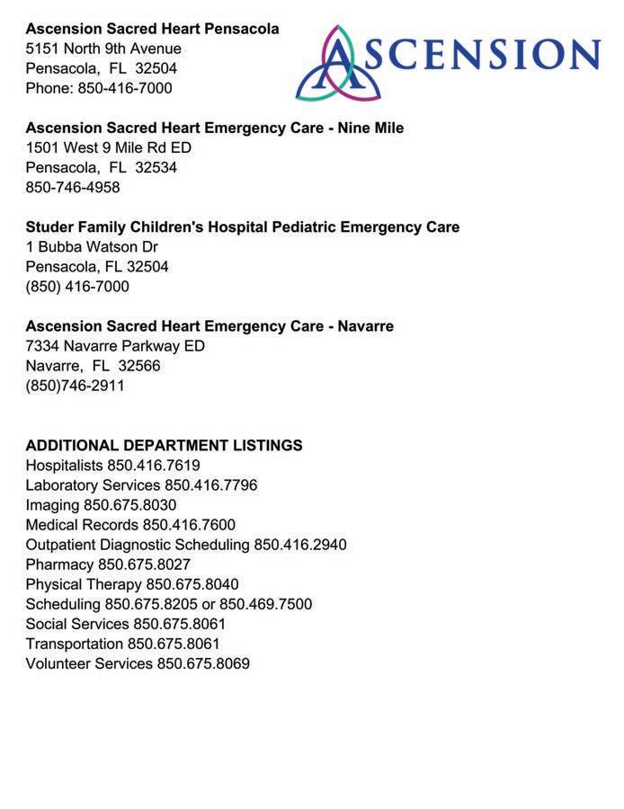 NPI: 1699729288 Associate Professor of PD, University of Florida. Director, Pediatric Residency Program at Studer Family Children’s Hospital at Ascension Sacred Heart, Pensacola 5151 N. 9th Ave. Pensacola, FL 32504 (850) 416-7710 Fax: (850) 416-4474 healthcare.ascension.org//pdresidency
