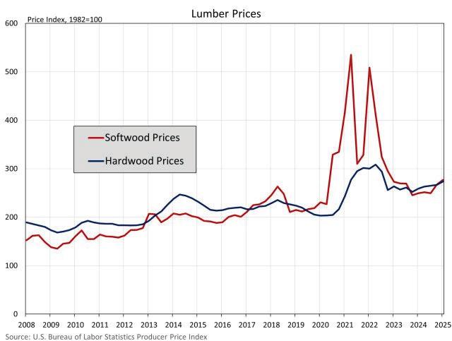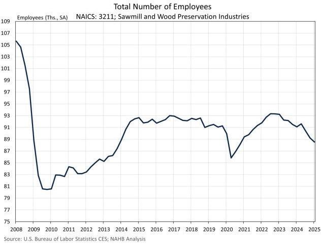 Lumber cost uncertainty has risen from the start of the year, driven in part by potential higher tariffs, particularly on Canadian softwood lumber. Despite the continued use and threat of tariffs, U.S. sawmill and wood preservation firms have not increased production to a level that replaces imports. In fact, utilization rates continue to fall, meaning they have the capacity to produce more lumber but are simply not operating at that level.