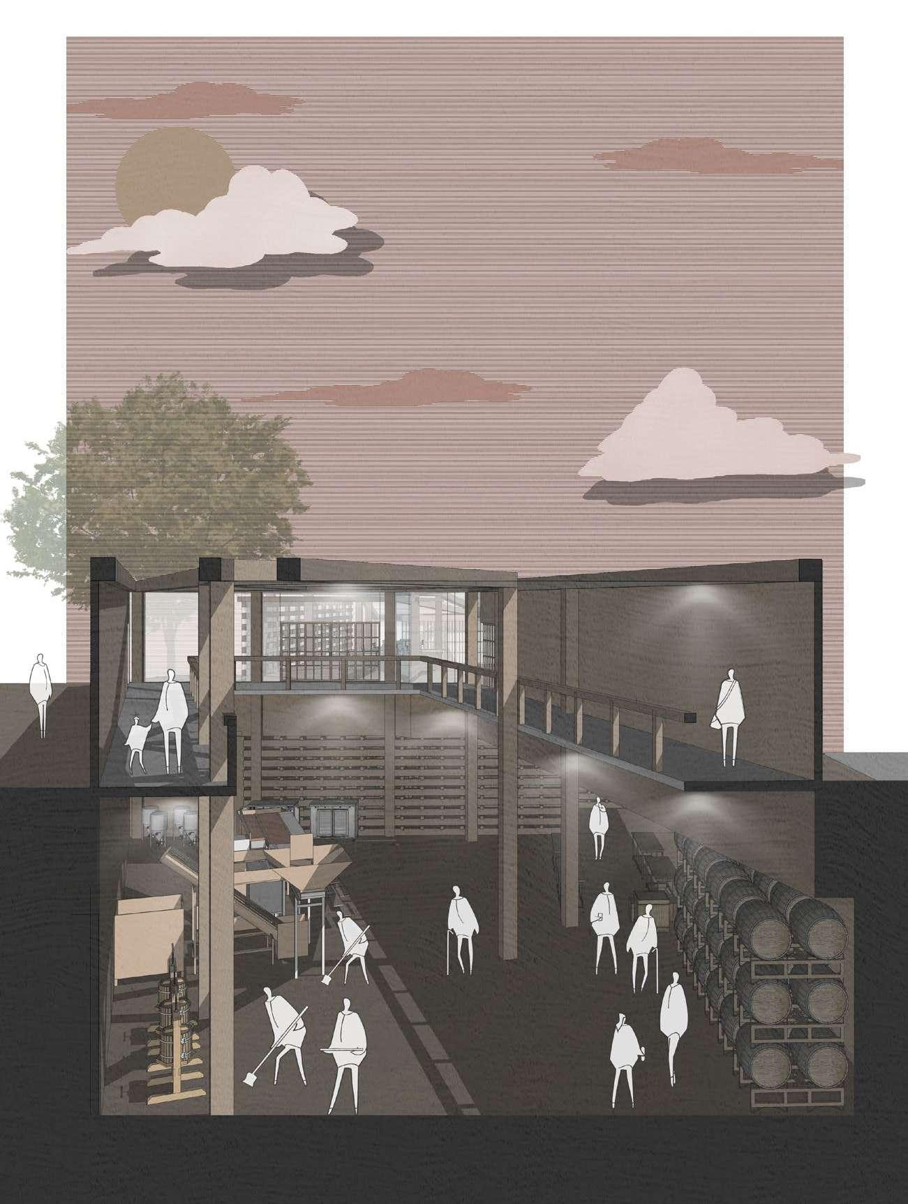 The image of apple tree branches is central to the design of the Cider Mill, reflecting the intricate urban road structure of the neighborhood. Apple branches also suggest the way in which the Cider Mill connects with and engages the neighborhood. The programs of the Cider Mill are connected by an applebranches-like layout.