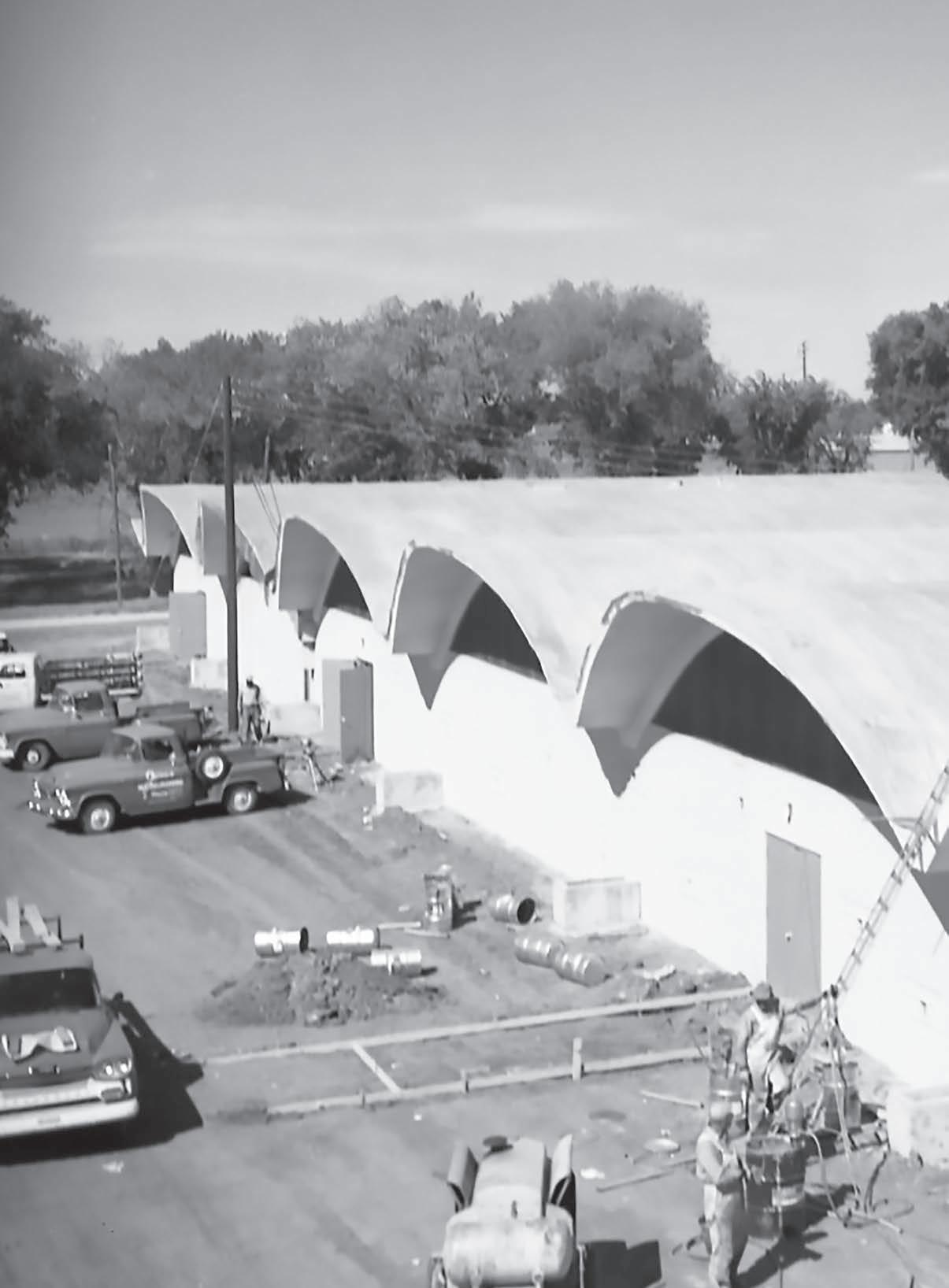 Growing from a small activation crew to a full-fledged Air Force Station with 200 personnel, initially, the “hill” overlook ing the Caney River Valley was divided into three areas. The Operations Area contained the AC&W Operations building, generator power plant, boiler house and tech supply building. The Cantonment Area contained the Bachelor Officer’s Quar ters, six enlisted barracks, orderly room, dining and recreation hall, tennis courts , motor pool and other support buildings.