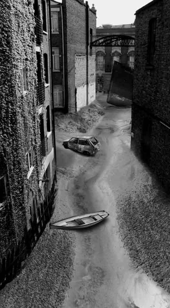 Ellen Page, Surviving the Great Flood of 2035: Using the technique of ‘Backcasting’ Ellen shows how London might survive a major rise in sea level by creating refuge structures and by embedding emergency strategies in urban carnivals over the next 20 years. The work is based in a simultaneous understanding of the technical and cultural issues that surround this increasingly plausible future
