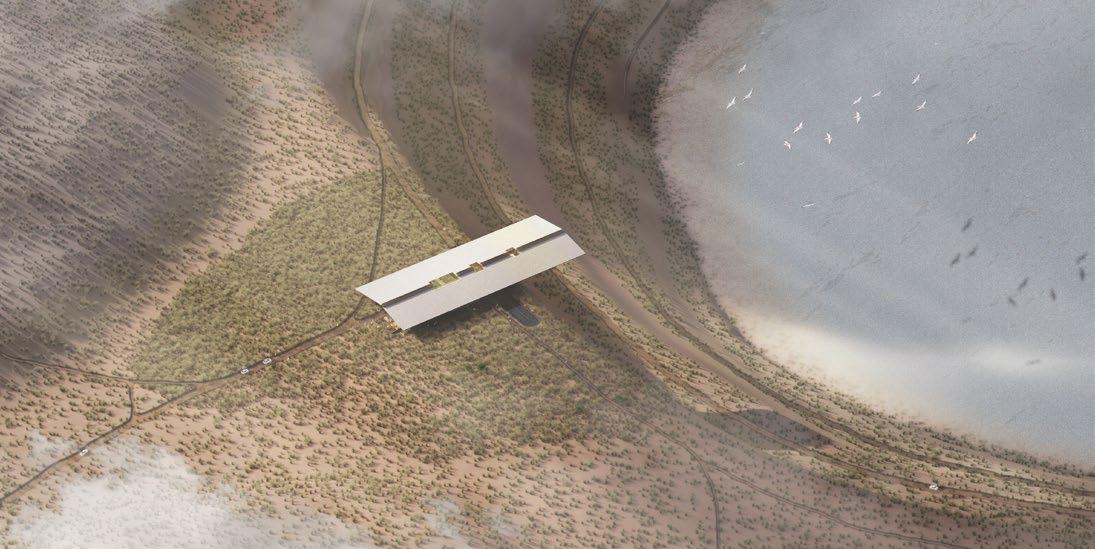 14.16, 14.25 Peter Garfath, Y4 ‘Letlhakane Mine’. This project repurposes a depleted diamond mine in central Botswana. By capitalising on the unique site conditions, it transforms the landscape through bioremediation and addresses contamination in the mine’s naturally water-filling basin. Designed as an exhibit and educational hub for Botswana’s mining industry, the project primarily uses underutilised Acacia trees as an architectural material, giving it a defining characteristic. 14.17, 14.22 Kei Käppeler, Y4 ‘The Black Forest House’. This project strengthens the identity of the local community by creating spaces which enhance the culture and traditions of the region. It simultaneously serves as a brewery, beer hall, festival centre, farm, garden and river stadium. The large, spanning gable roof, supported by tree-like timber structures, is set into the edge of a mountain, drawing inspiration from vernacular Black Forest architecture.