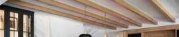 • Hand-hewn reclaimed timbers decorate the ceiling and create a warm balance with fresh white finishes.