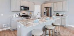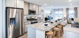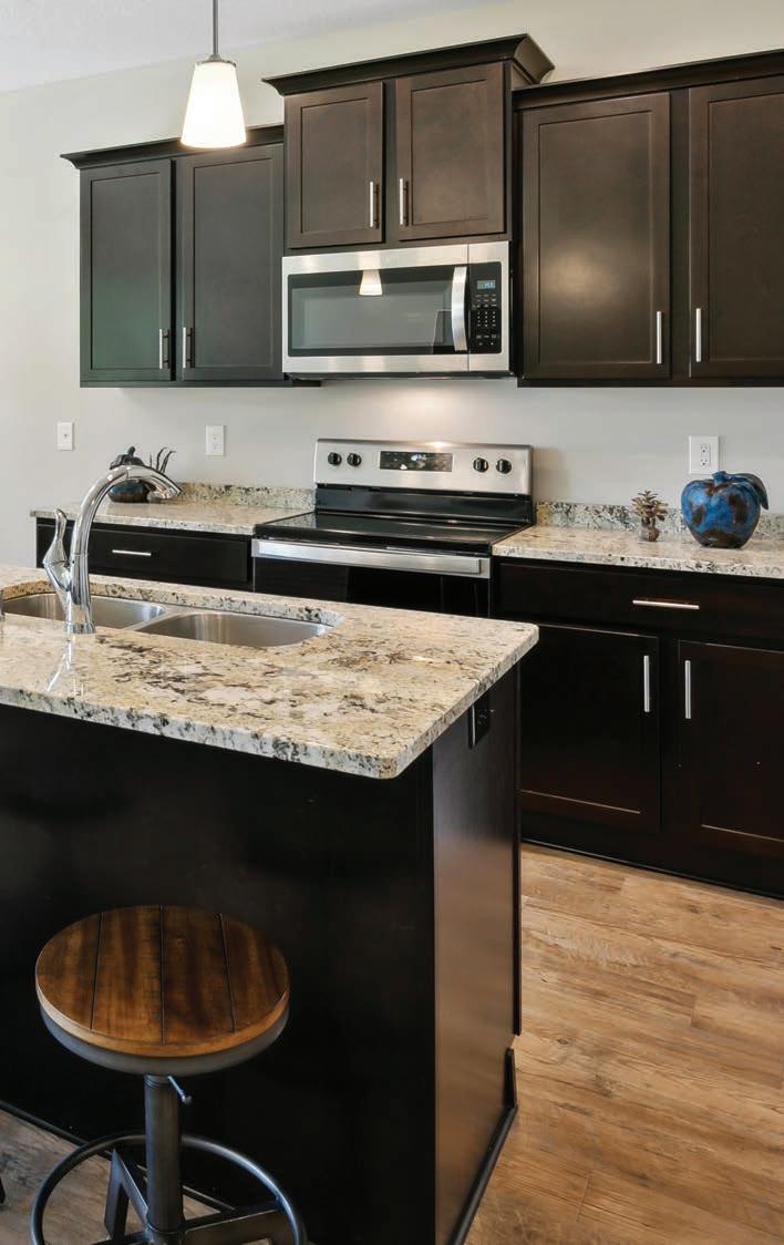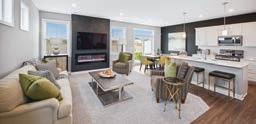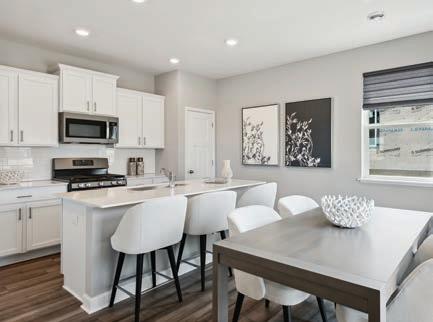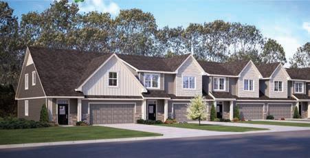 Live your best life in our luxury townhomes with main-level living at its nest, featuring an open-concept kitchen, dinette and great room. Owner’s suite has a luxurious bathroom and oversized closet. The upper level is ideal for today’s modern living with spacious second bedroom, full bath, home o ce space and flex room which can make an ideal home gym or third bedroom. The large loft area lends itself perfectly to your dreams of game room, home theater, teen space and more. These homes include the luxury nishes you have been looking for - quartz kitchen and bathroom countertops, stainless steel appliances, LVP flooring, and designer-selected interior nishes.