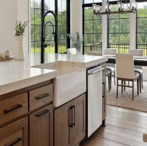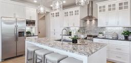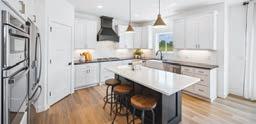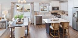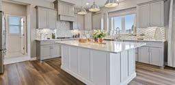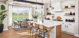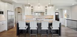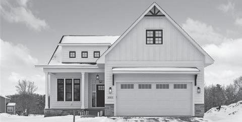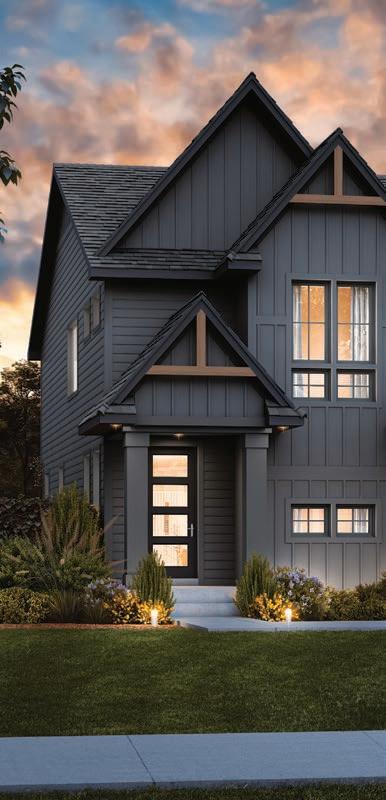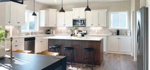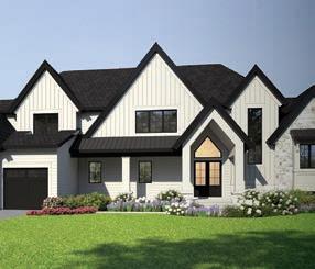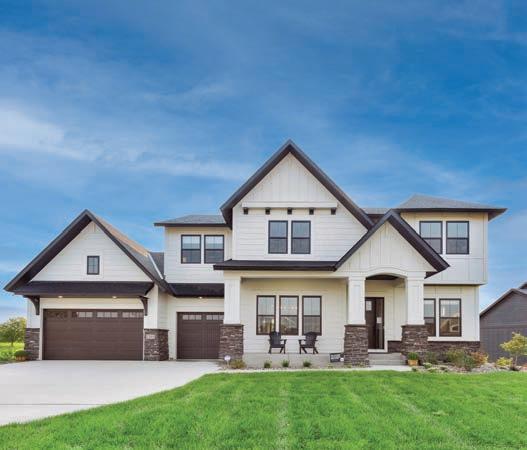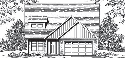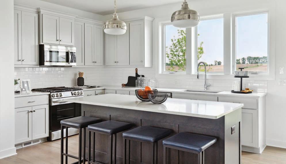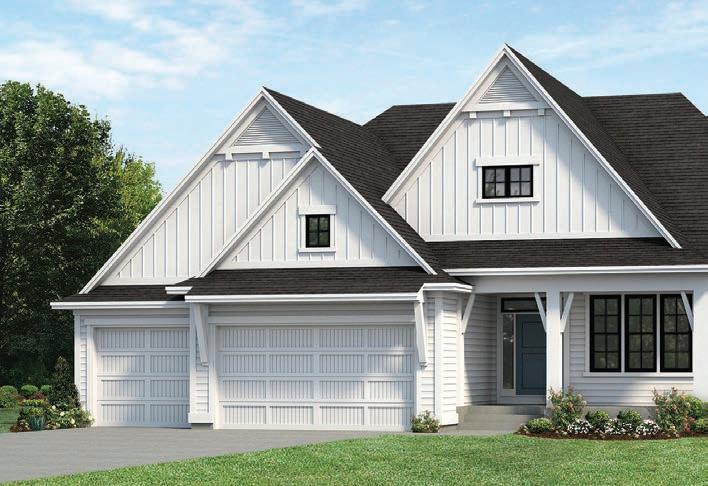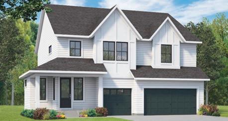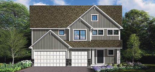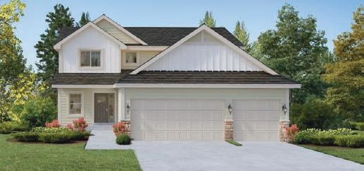 The Dearborn o ers the perfect mix of farmhouse styling with modern nishes. You’ll love the open-concept layout, white kitchen with black accents, spacious loft, and vaulted owner’s suite.