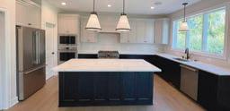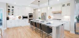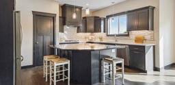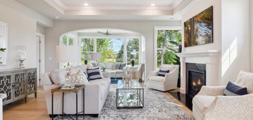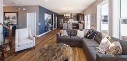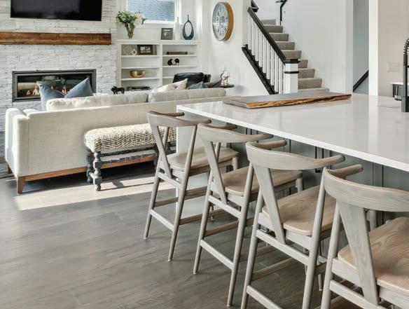 The Amelia is a light- lled home with an open layout, warm wood tones, and stunning nishes throughout. The main level has 3 BR and 2 BA, with an additional BR, BA, and rec. room in the lower level.
