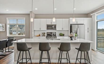 Available now, Amberglen in Shakopee o ers Express Select two-story, single-family homes featuring 3-5 bedroom plans, open-concept main levels, well-appointed kitchens, loft spaces, and more!