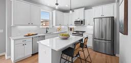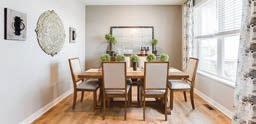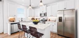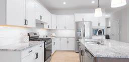This beautiful townhome o ers opulence through the ne nishes within the unit and the thoughtful design that sprawls across 1,729 sq. ft. Walking in from the front door you are greeted with a spacious foyer and a massive vaulted ceiling that spans across the whole main level. A custom-built kitchen with granite countertops, backsplash, walk-in pantry, and a center island that overlooks the dining and living rooms. The back sunroom o ers natural sunlight and a walkout to the concrete patio. The owners’ suite has a massive private bath with a soaking tub, walk-in shower and walk-in closet.