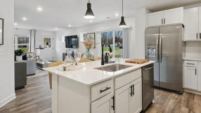 Guidance Homes, Inc. welcomes you to ‘Forest Hills Preserve’, a stunning 55+ association-maintained neighborhood. This beautiful custom slab-on-grade home, nestled between woods & water, is minutes from downtown Forest Lake & I-35. With over 2,200 sq. ft., it features a master suite, 2nd & 3rd bedroom/o ce, gourmet kitchen, cozy living room, sunroom with vaulted ceiling and walls of windows, and a large 4-car garage with storage above. Enjoy custom cabinets, in-floor heat, quartz countertops, gas replace, & landscaped yard with irrigation. Packages from $650K, choose from wooded lots up to 1 acre with slabon-grade or full basement walkouts.