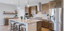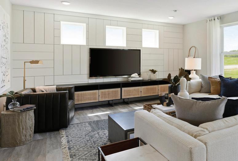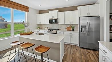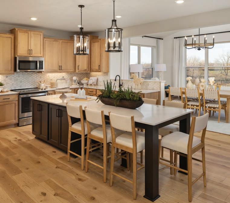 Nestled amongst wetlands and serene lakes, Nature’s Refuge o ers an ideal retreat convenient to I-35. The Alexander has an open layout, gourmet KT, tech nook, vaulted morning room, and a nished LL.